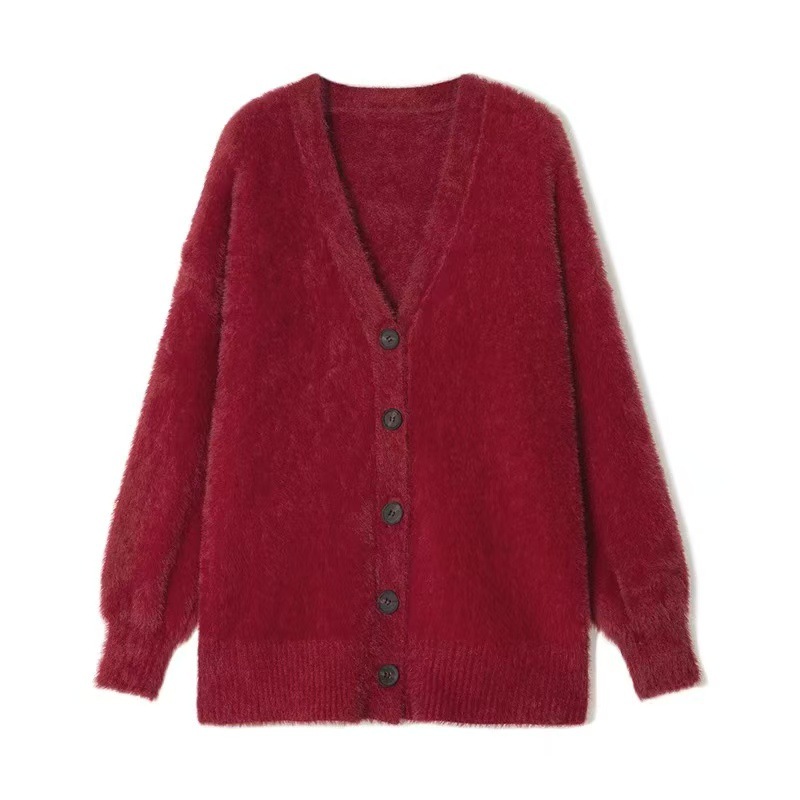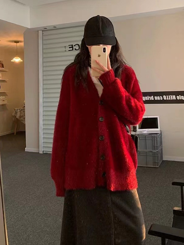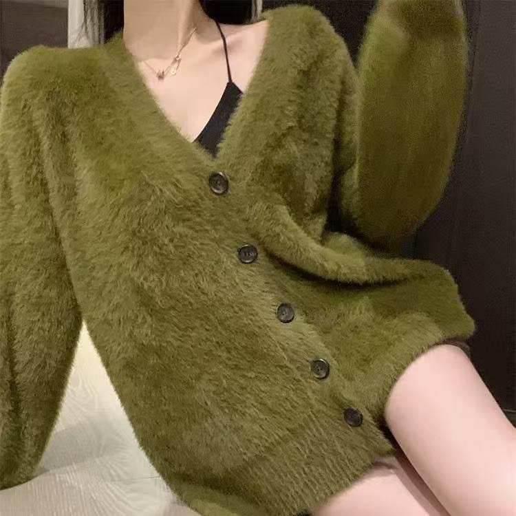 Главная страница > Трансграничный хит продаж, бархатный вязаный кардиган из норки для женщин, осенне-зимний толстый свободный свитер с рукавами-фонариками, куртка оптом