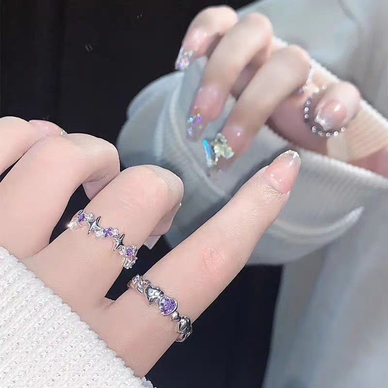 Кольцо в форме сердца с фиолетовым бриллиантом, ниша, нежная попа, регулируемое кольцо с двумя отверстиями, простое кольцо на указательный палец