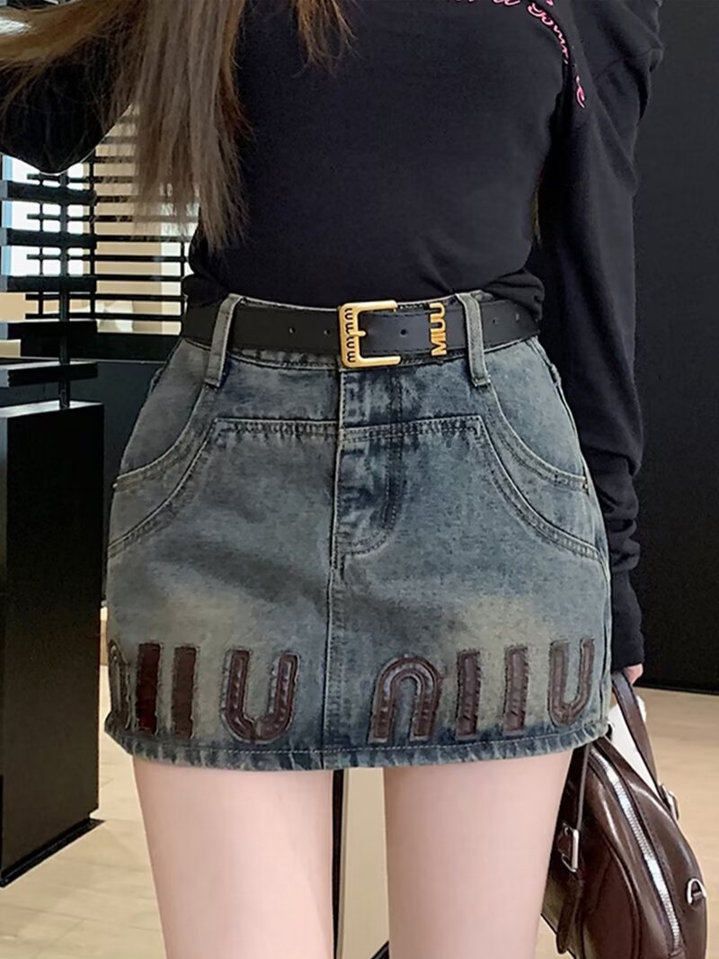 Ретро горячая девушка дизайн джинсовая короткая юбка женская летняя осень