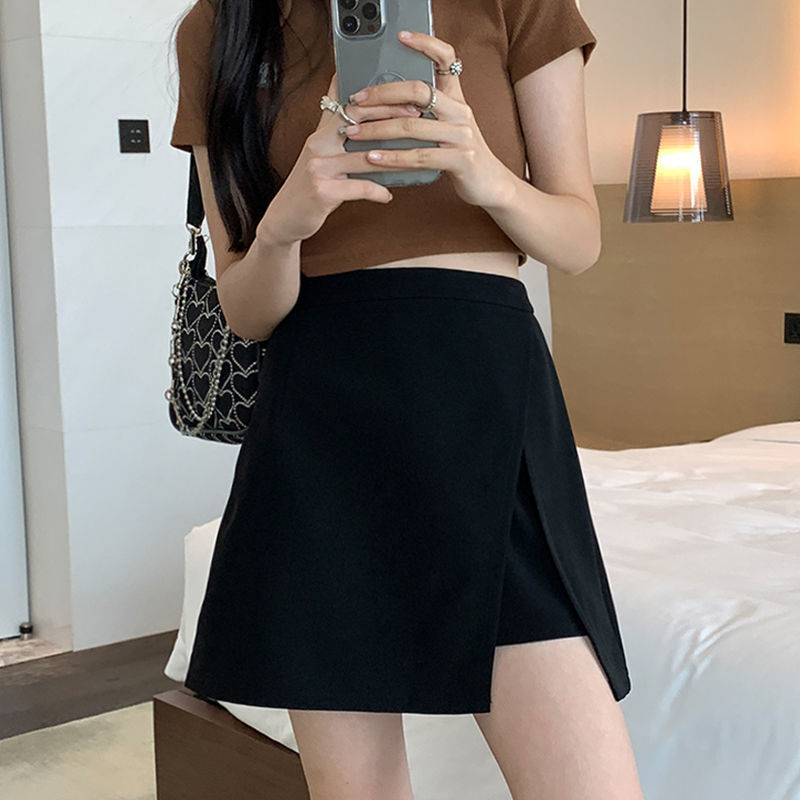 Главная страница > Подходит для пышной юбки для девочек, Женская весенне-летняя тонкая Асимметричная юбка с высокой талией и разрезом, черная короткая юбка-кюлоты больших размеров