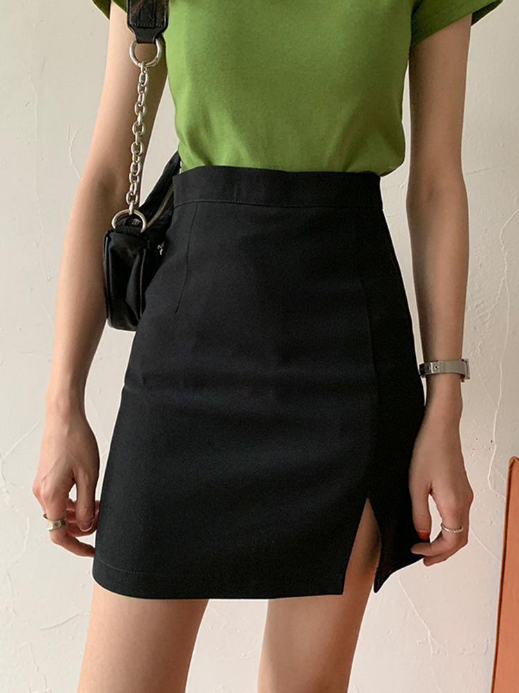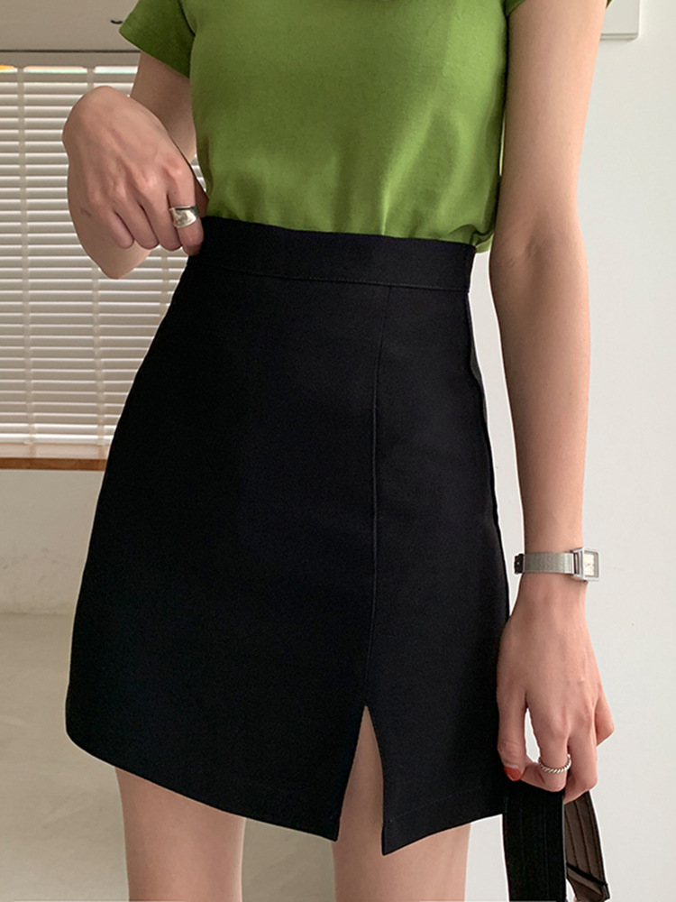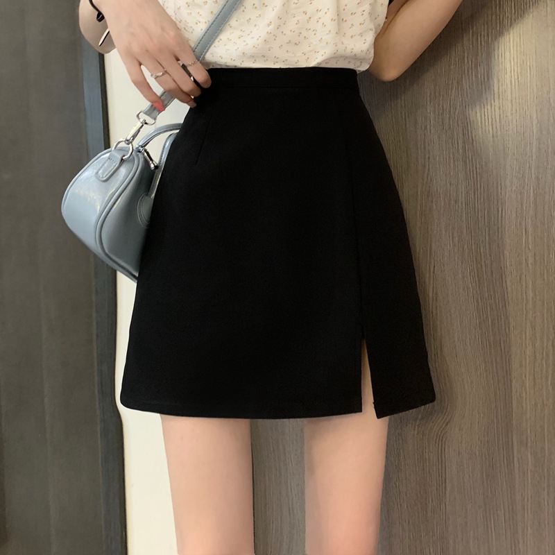 Главная страница > Черная юбка с высокой талией и разрезом, Женская Весенняя Новинка 2021, короткая юбка А-силуэтом, костюм, юбка на бедрах, летний дизайнерский смысл
