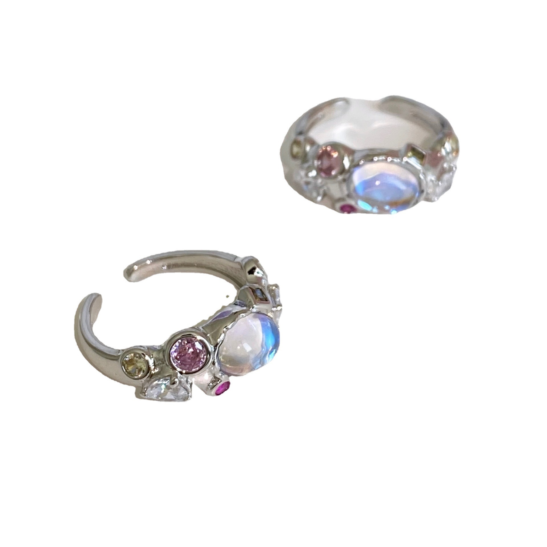 Новый стиль элегантный же стиль Опал Лунный камень кольцо ниша дизайн чувство модный Открытое кольцо розовый циркон еда