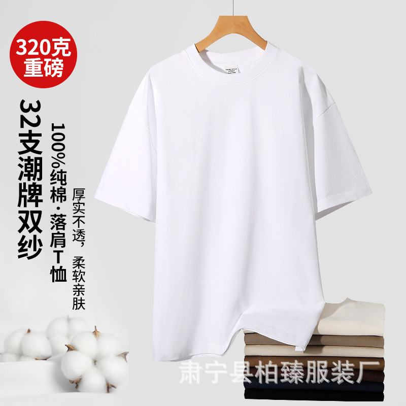 Главная страница > 320G тяжелая двойная пряжа из хлопчатобумажной белой футболки с короткими рукавами для мужчин и женщин толстый и непрозрачный цвет свободный отдых летом