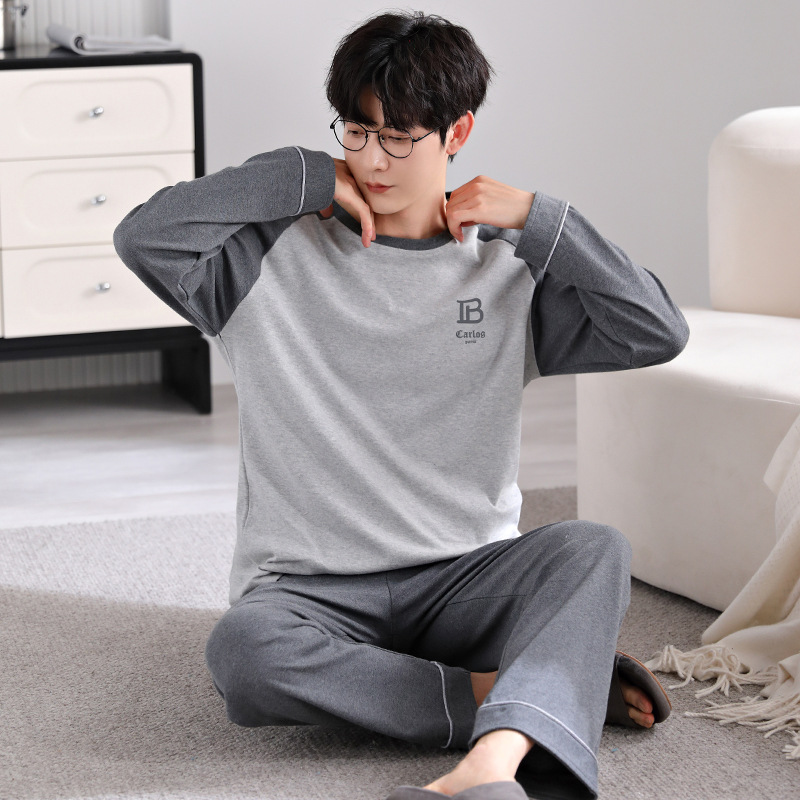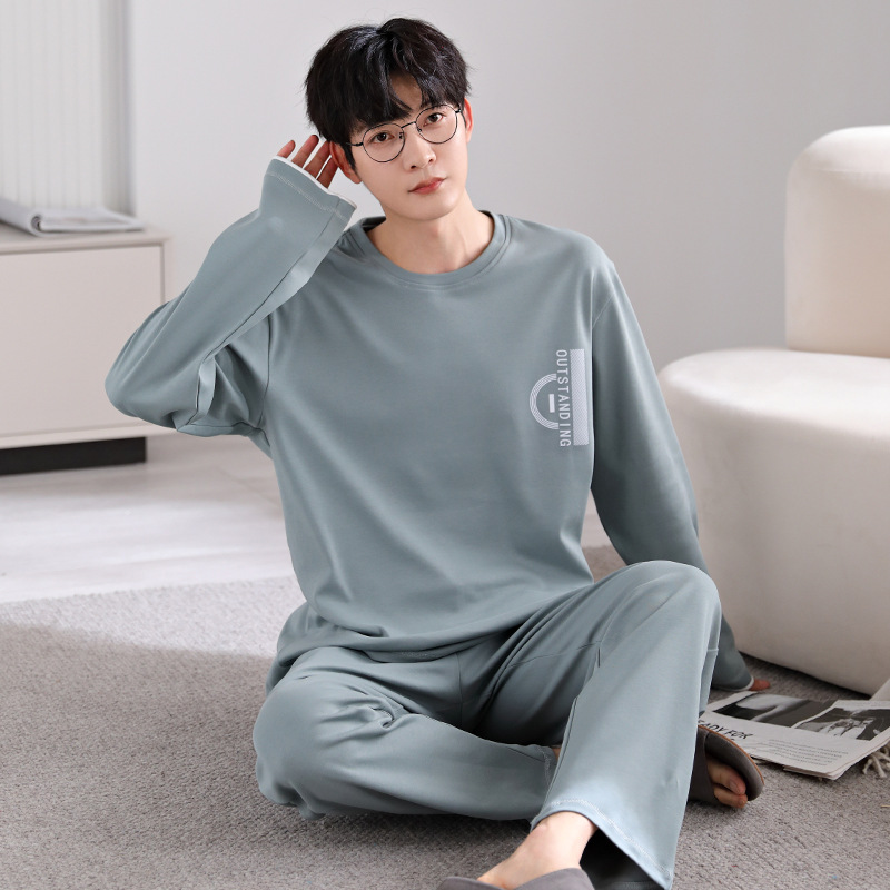 Главная страница > 100% хлопчатобумажная двухсторонняя мужская пижама осень-зима новый круглый воротник повседневный может носить весенний костюм с длинными рукавами