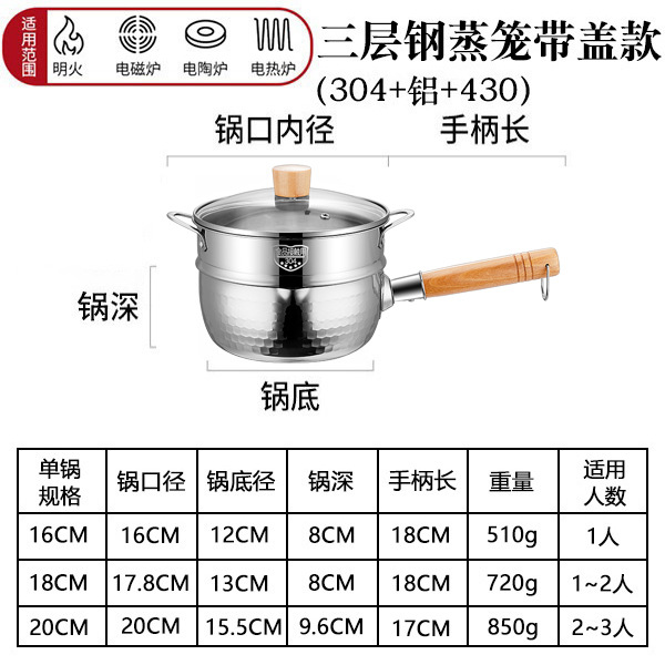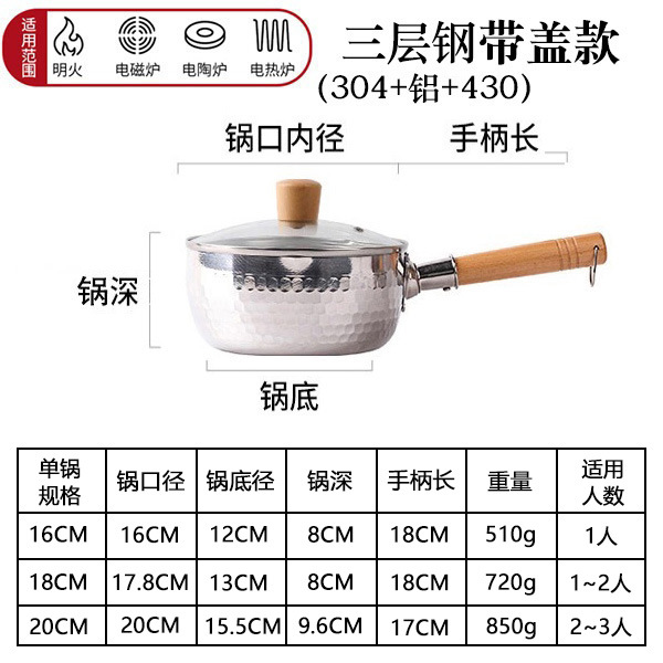 Главная страница > Пищевая трехслойная стальная снежная кастрюля Tijun Le 304 из нержавеющей стали молочная кастрюля
