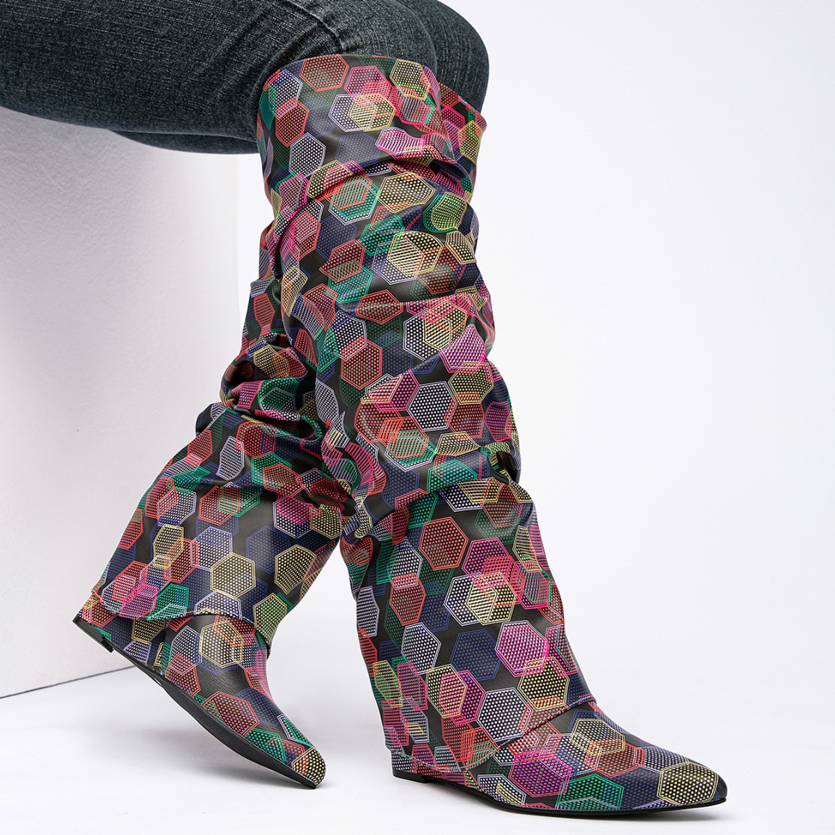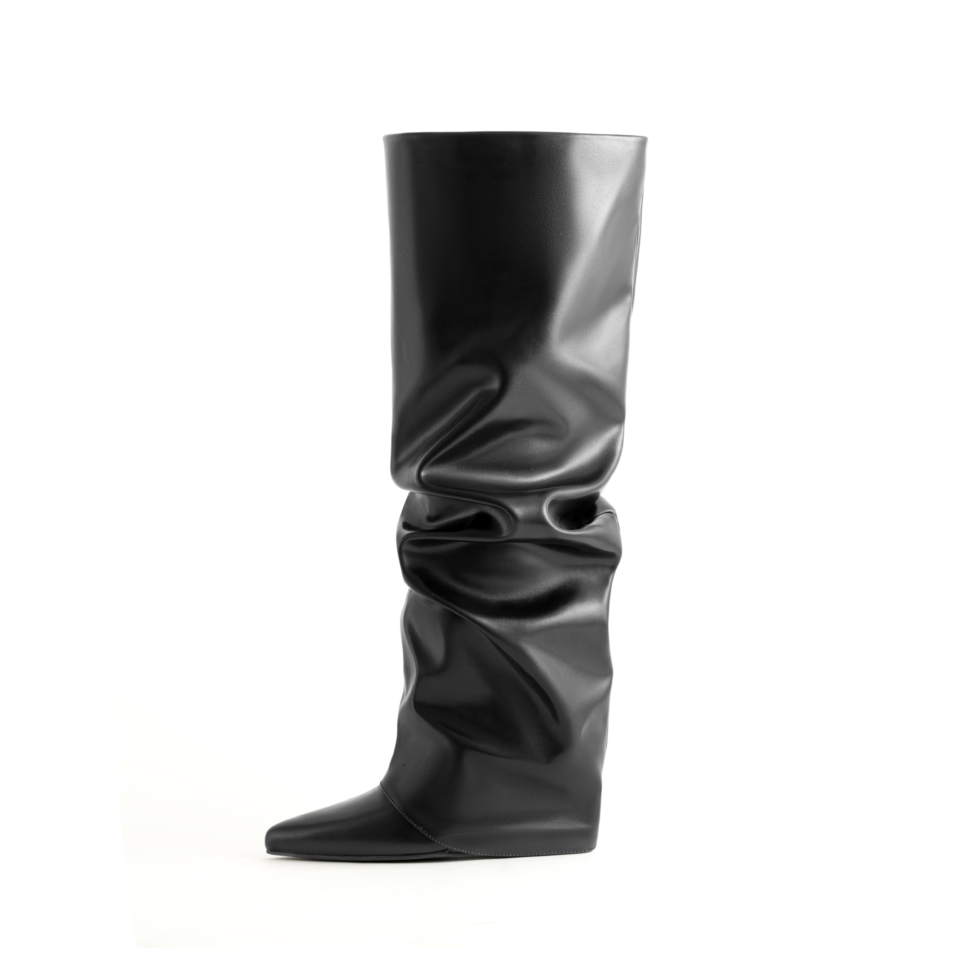 Главная страница > Женские высокие сапоги, осенне-зимние сапоги в наличии, экспортные черные ботинки-полусапоги, сапоги на танкетке с плиссировкой, высокие сапоги