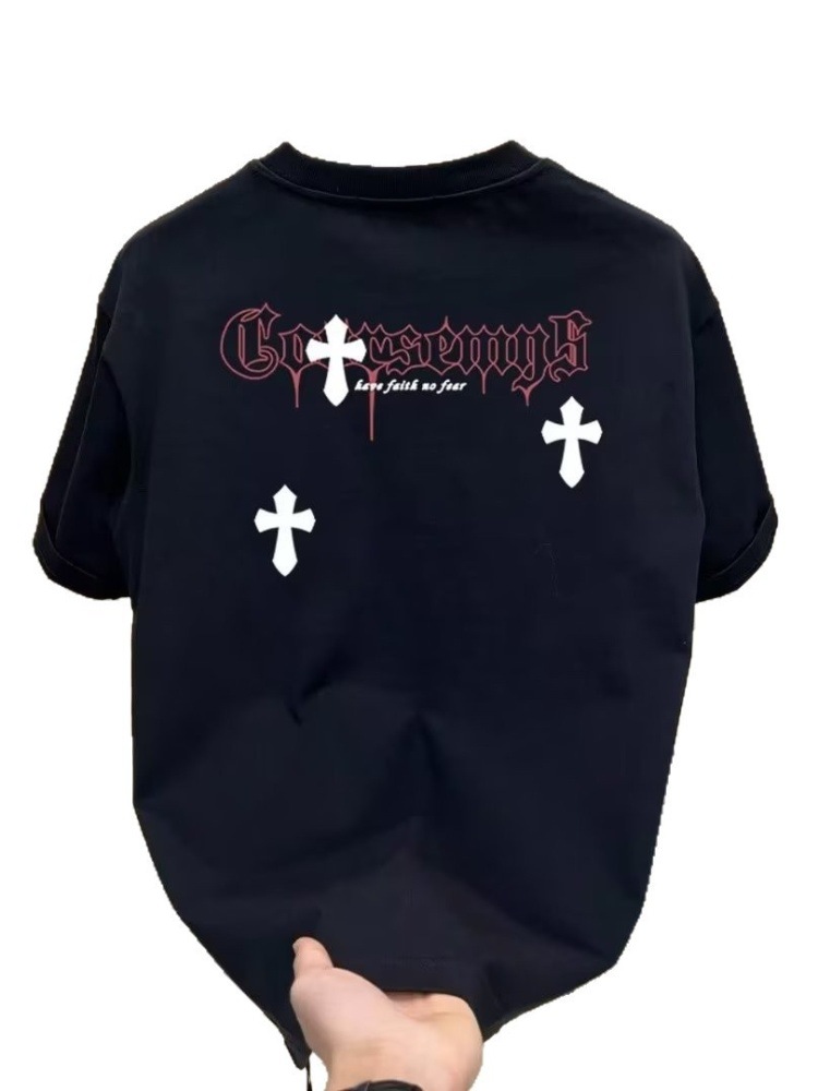 Главная страница > Мужская футболка в американском стиле из чистого хлопка с короткими рукавами, летняя модная уличная футболка с круглым вырезом, свободный модный топ с половиной рукавов