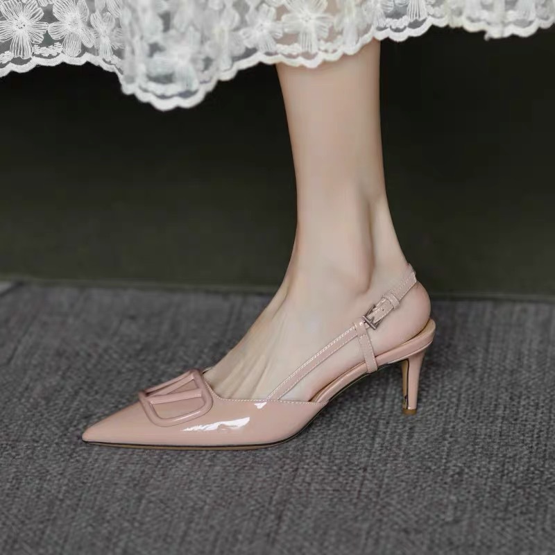 Главная страница > Женские туфли на высоком каблуке 2025 года, лакированные туфли-стилето с острым носком для офиса, закрытые босоножки, закрытые босоножки V-бренда.