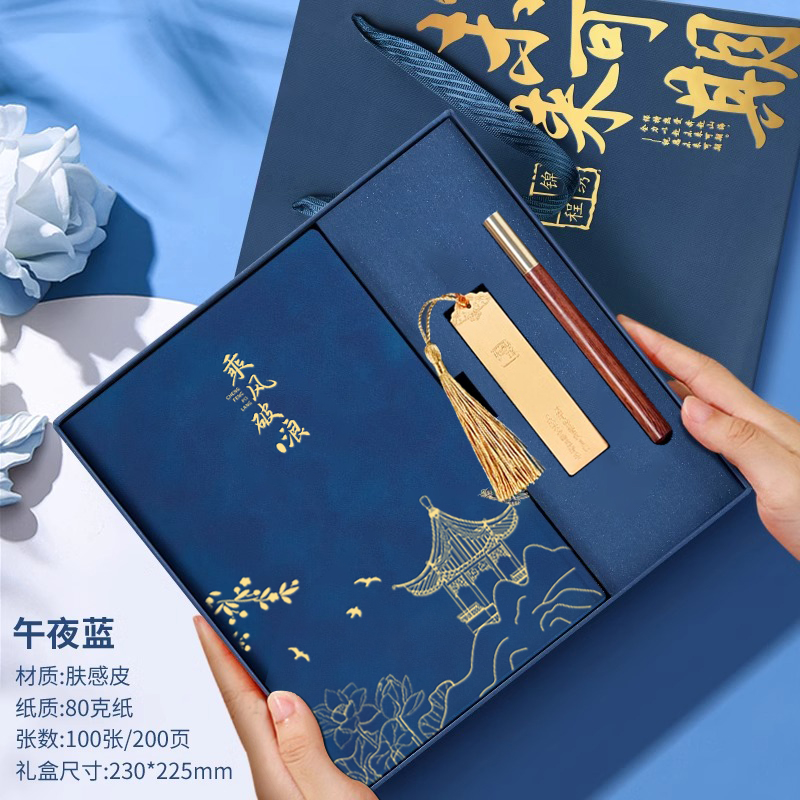 Катание на ветре и волнах [Роскошный набор из четырех предметов с бесплатным подарочным пакетом] Midnight Blue Sheep Buben + металлическая ручка + закладка в китайском стиле