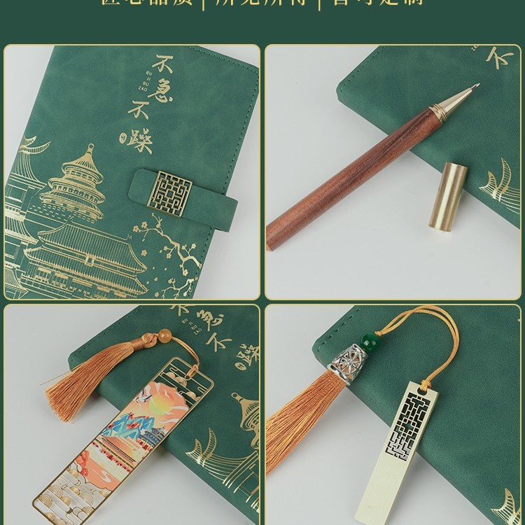 Не торопитесь и не терпеливо [трехсекционный набор Guochao в стиле ретро с бесплатным подарочным пакетом] темно-зеленая овчина + латунная ручка + закладка для фермеров