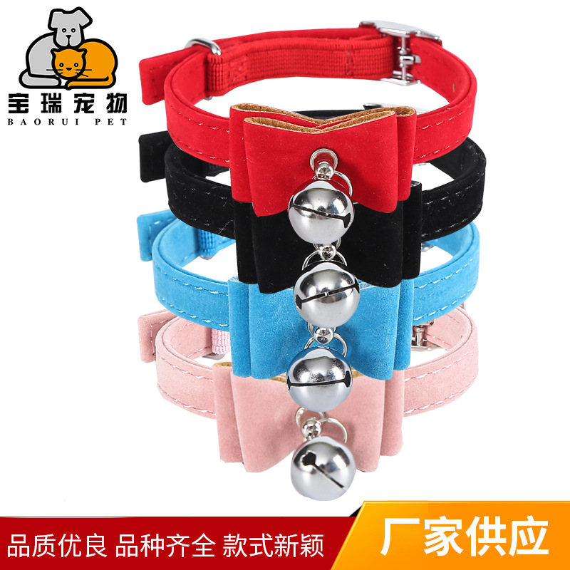 Трансграничный ошейник для домашних животных Маленький ошейник-бант с колокольчиком для кошек и собак Высококачественный флокировочный ошейник для домашних животных