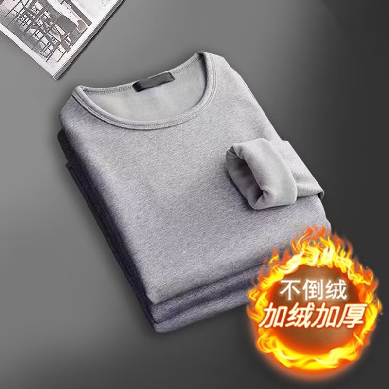 Главная страница > Осенне-зимняя футболка с круглым вырезом и длинными рукавами, Мужская осенняя одежда больших размеров на флисовой подкладке, теплый Однотонный свитер, модная Повседневная Базовая рубашка внутри