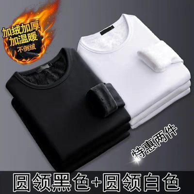 Осенне-зимняя футболка с круглым вырезом и длинными рукавами, Мужская осенняя одежда больших размеров на флисовой подкладке, теплый Однотонный свитер, модная Повседневная Базовая рубашка внутри