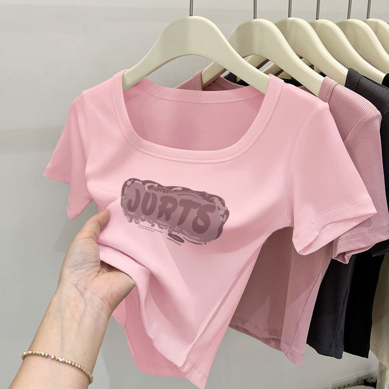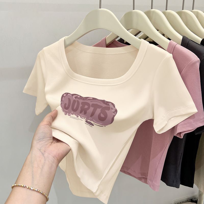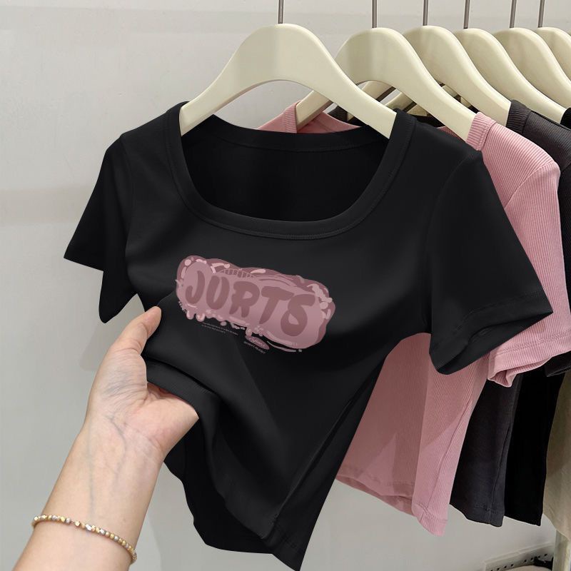 Главная страница > Pure Desire Hot Girl Короткая футболка с квадратным вырезом Женская футболка с коротким рукавом 2025 Лето Новый дизайн Обтягивающий универсальный топ для похудения