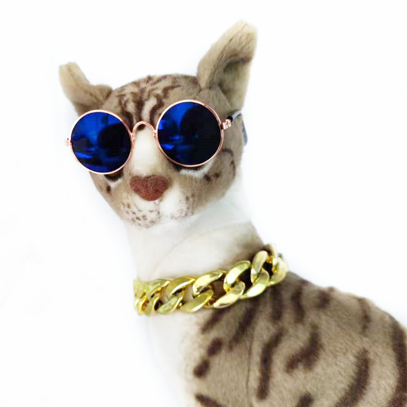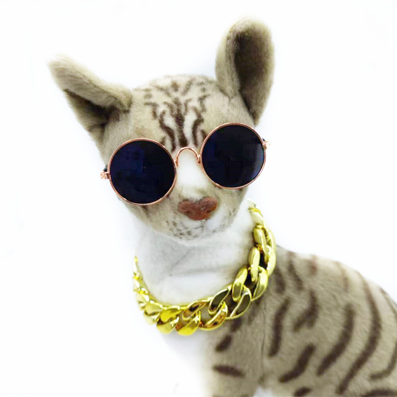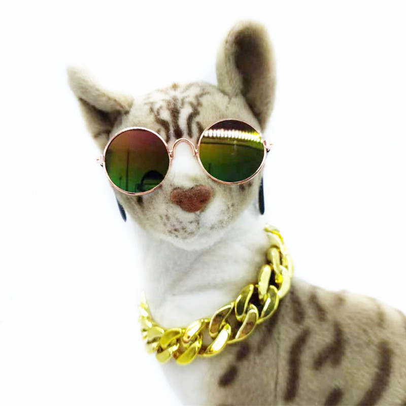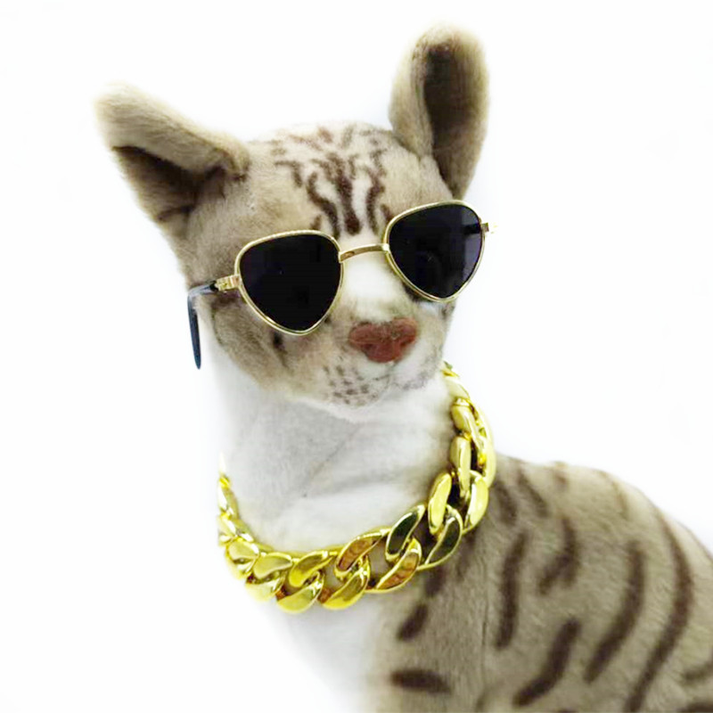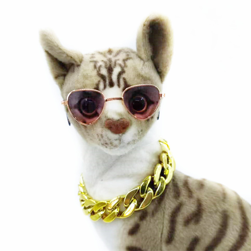 Желание трансграничные очки для домашних животных Золотой Ошейник Кошка Тедди солнцезащитные очки большое Золотое ожерелье Костюм Собака властная золотая цепочка
