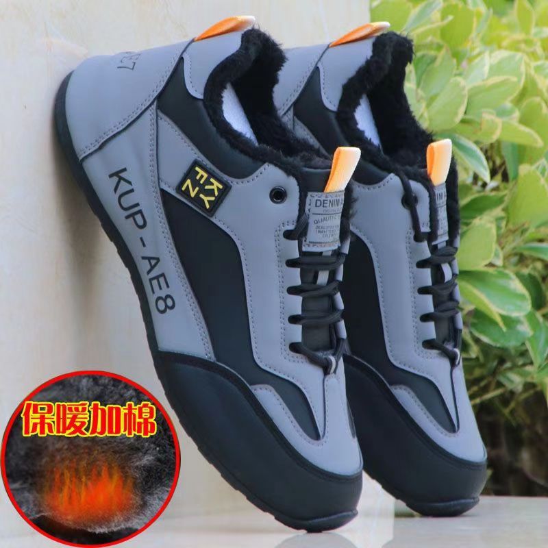 Кожа/хлопковая обувь плюс бархат [S13 серый]/усовершенная модель