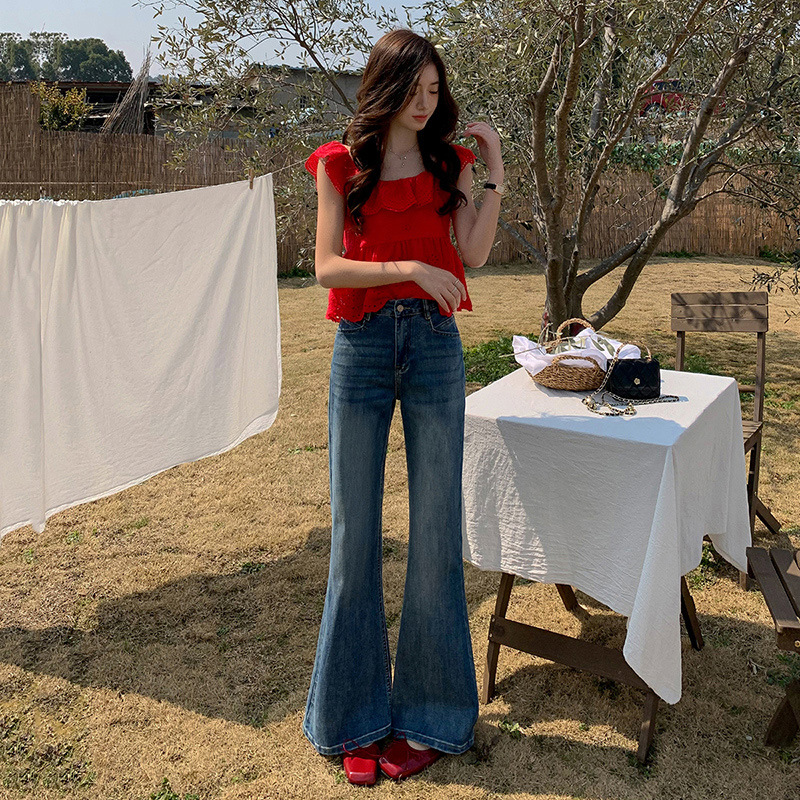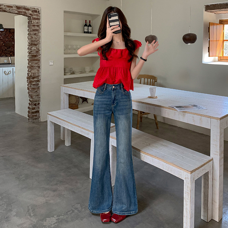Главная страница > Джинсы-клеш Minghai с высокой талией, стрейч, укороченные, для женщин, удлиненные, в простом стиле, с эффектом стройности