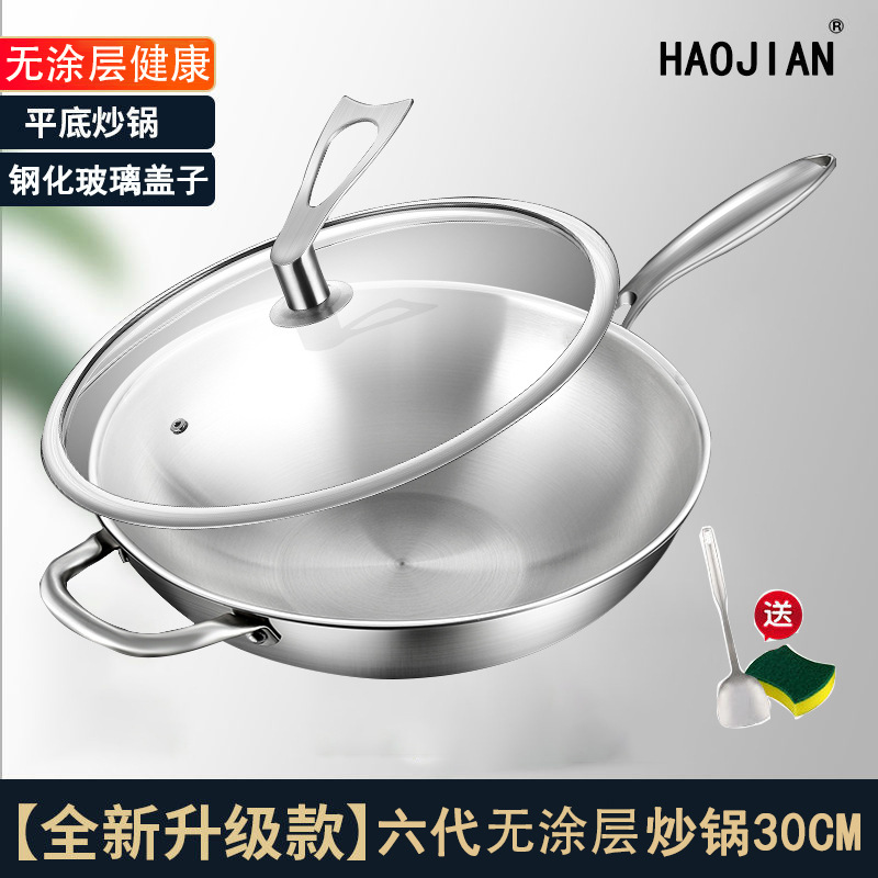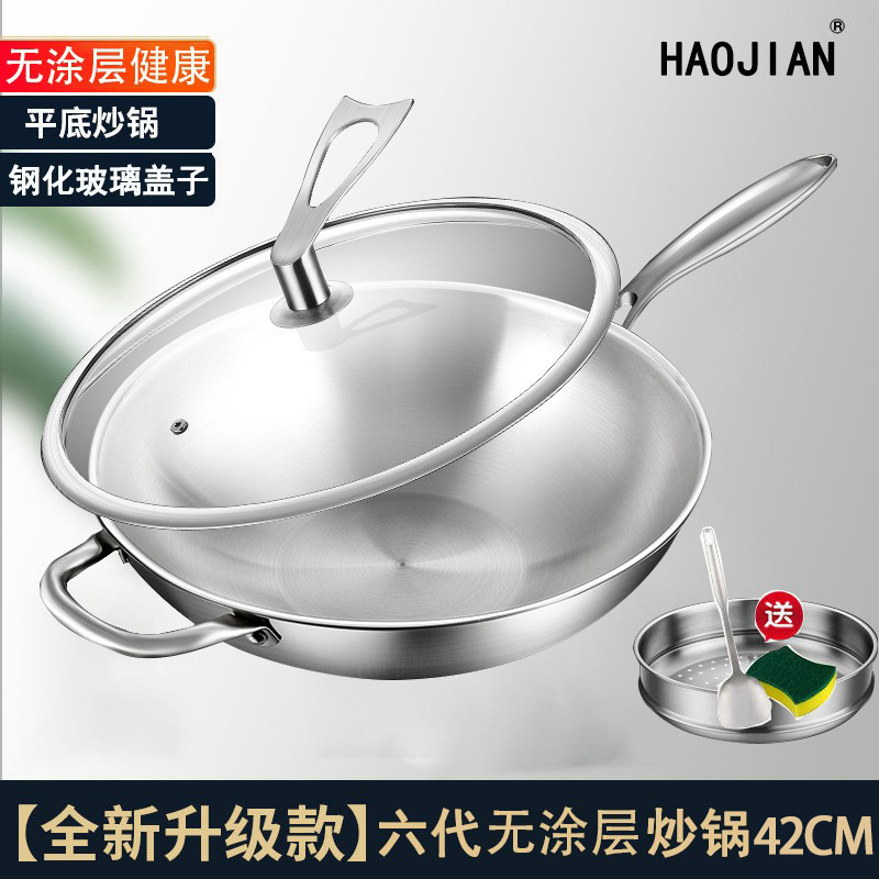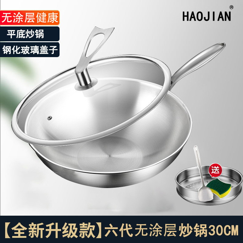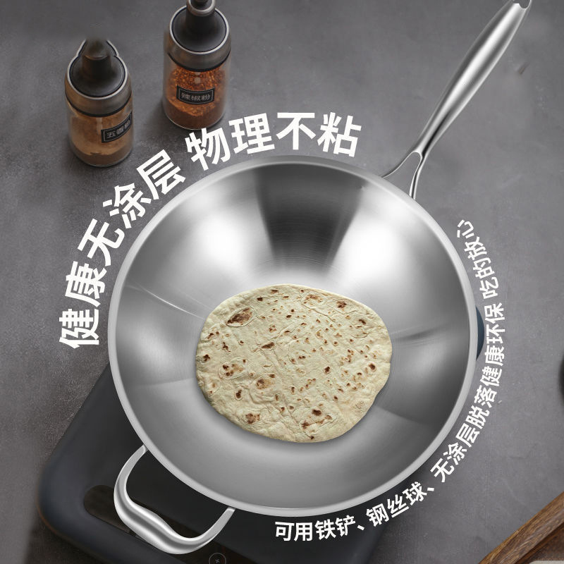 Главная страница > Wok очень толстая Сковорода из пищевой нержавеющей стали 316 Бытовая индукционная плита без покрытия без ламповой сажи