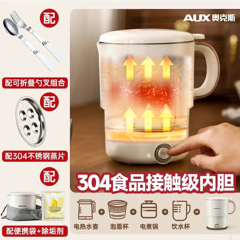 Портативный складной чайник-белый [внутренний бак 304 с отпаривающим листом]