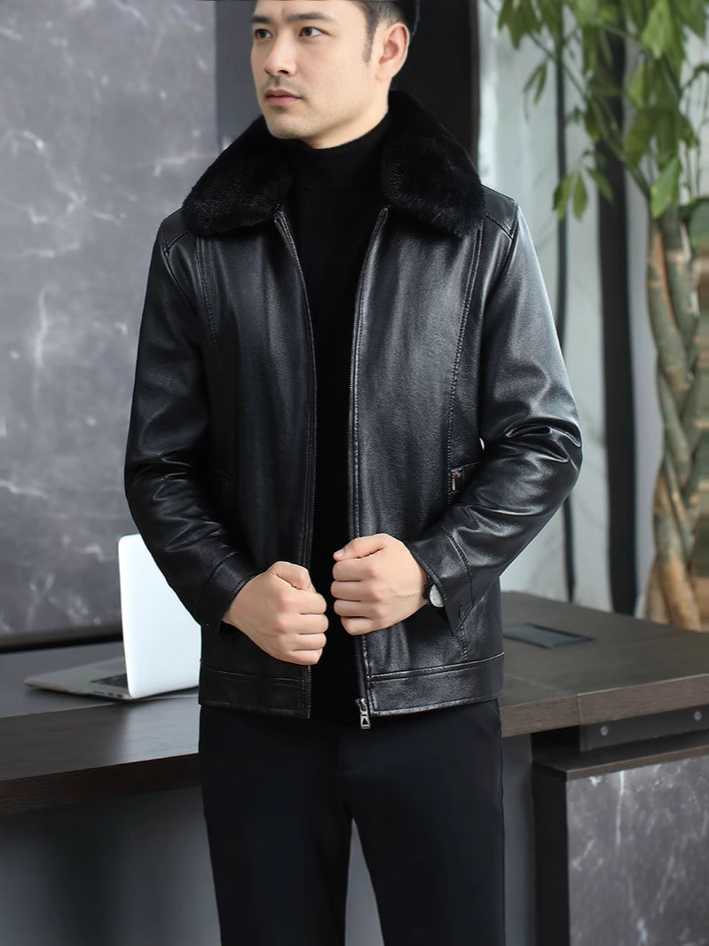 Главная страница > Высококачественная кожаная одежда мужская новая бархатная утолщение мужская зимняя куртка среднего и пожилого отца кожаная куртка
