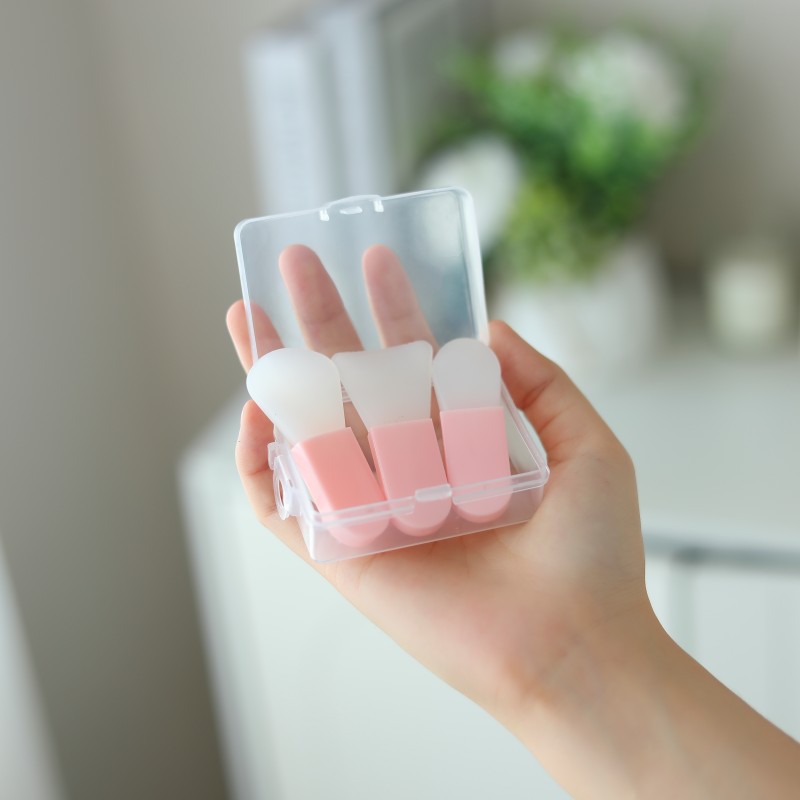 Набор розовых силиконовых кистей для маски для лица из 3 штук (плоская головка, круглая головка, форма языка)