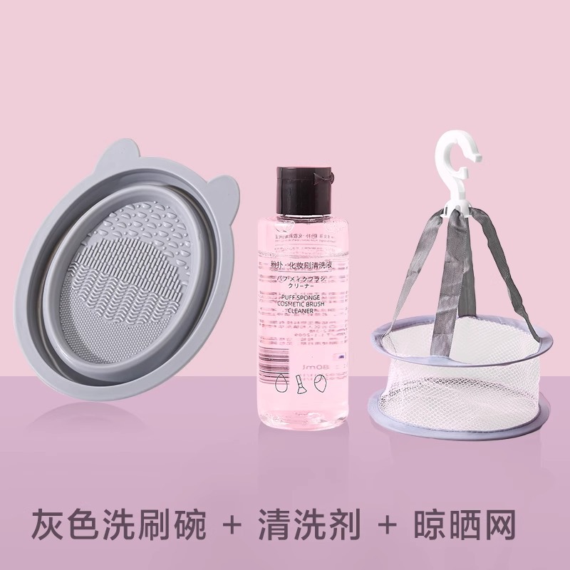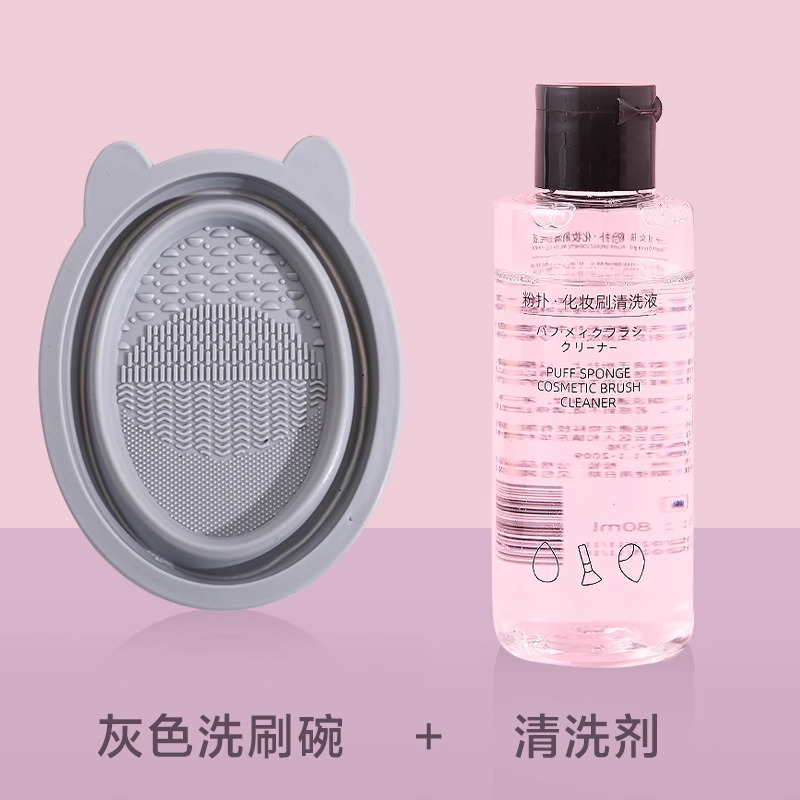 [Стиль серого кролика] Миска для мытья + очиститель для пуховок