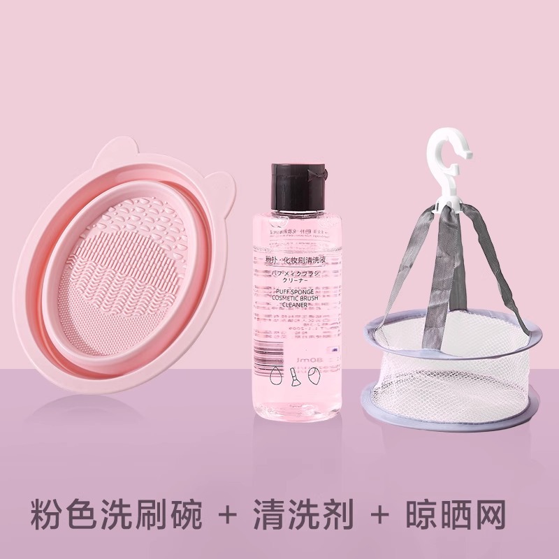 Миска для мытья розового кролика + сетчатая сумка для сушки + очиститель для пуховок