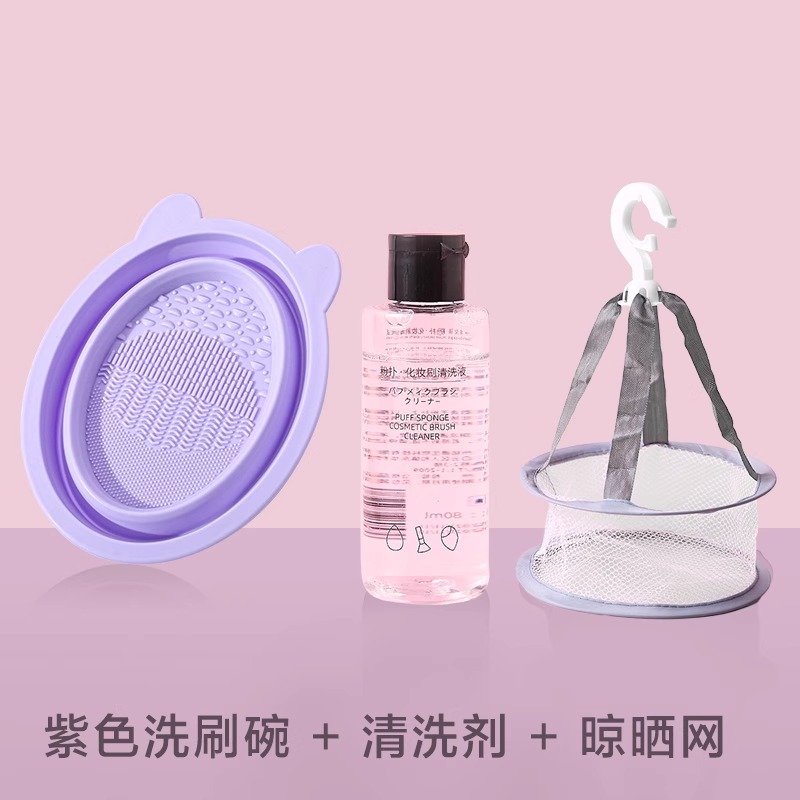 Миска для мытья фиолетового кролика + сетчатый мешок для сушки + очиститель для пуховок