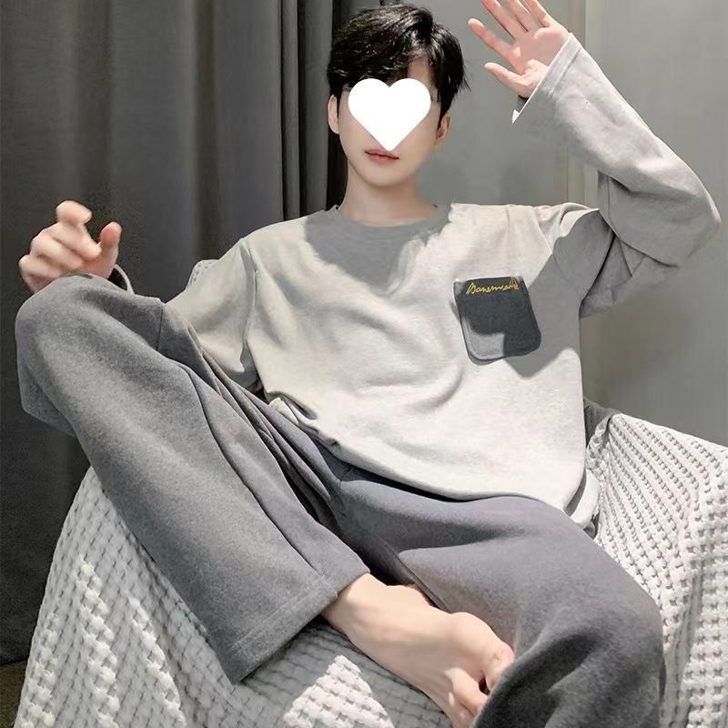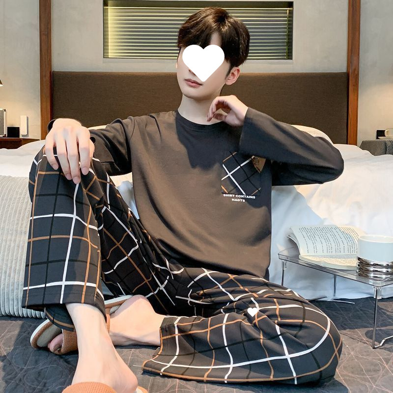 100% хлопчатобумажная пижама мужской с длинными рукавами весной и осенью