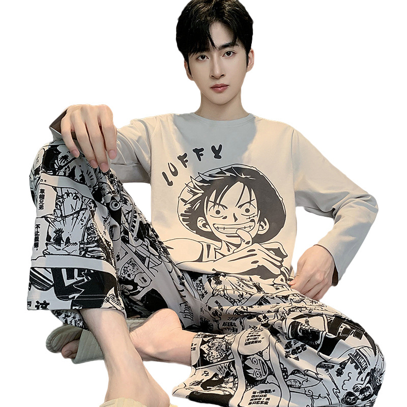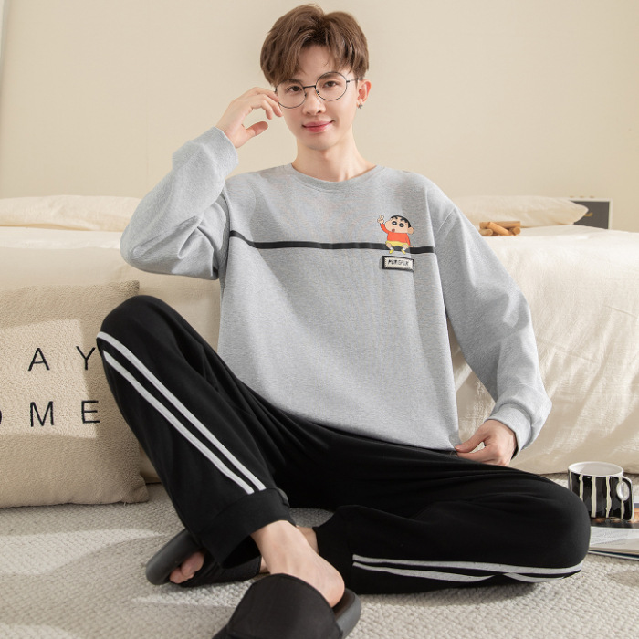 Главная страница > Хлопчатобумажная пижама мужская весна и осень с круглым вырезом с длинными рукавами брюки большого размера мультфильм подросток может носить костюм на дому