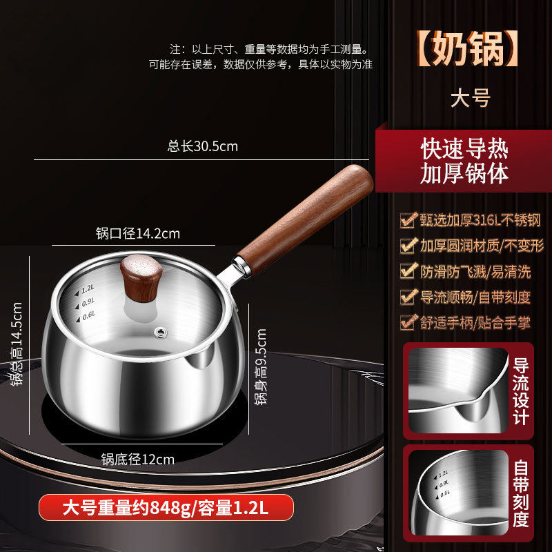 Главная страница > Маленькая молочная кастрюля с многослойным дном из нержавеющей стали 316, ручка из ореха, защищающая от ожогов, плоская кастрюля для снега, утолщенная кастрюля для пищевых добавок без покрытия с крышкой