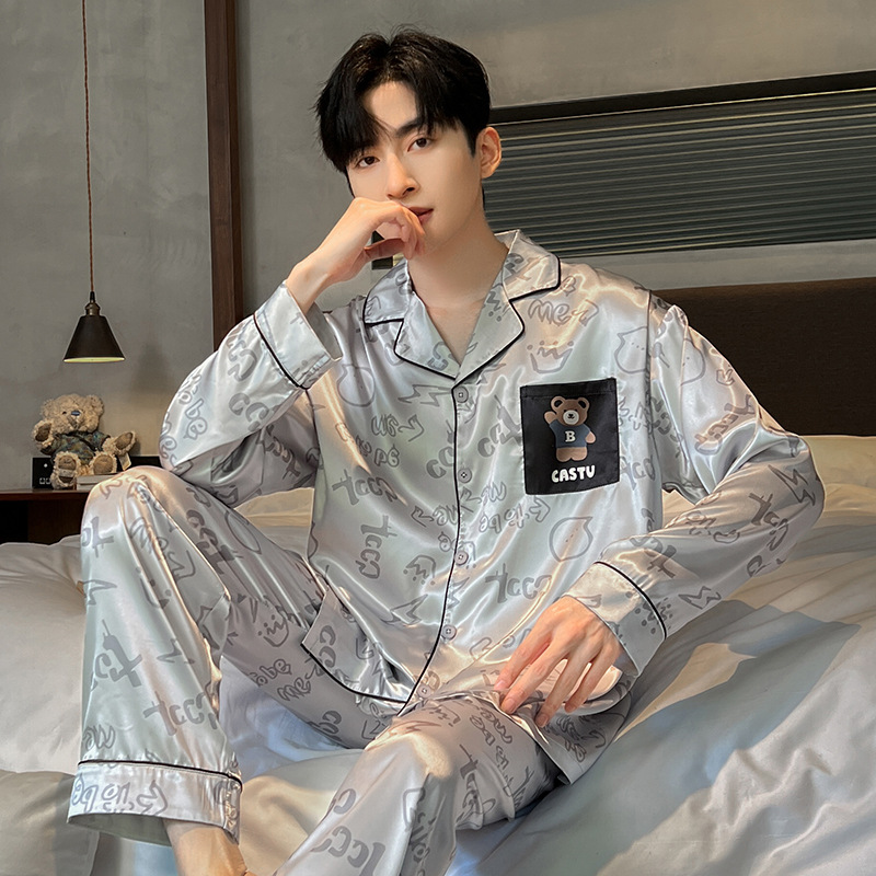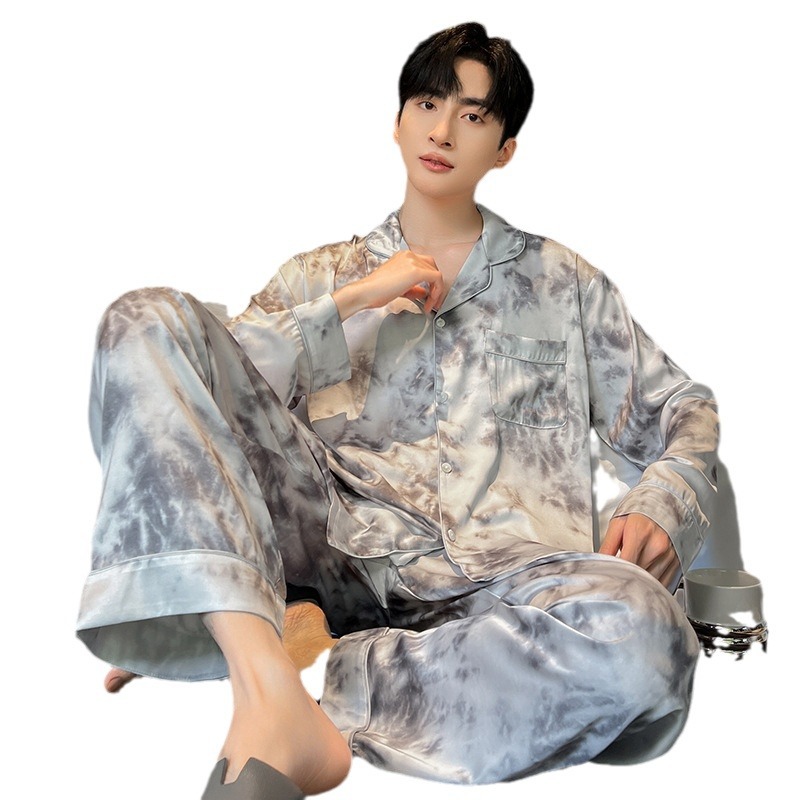 Главная страница > Пижама из ледяного шелка мужская весна осень 2025 новые брюки с длинными рукавами тонкие мужские большие размеры мужской костюм