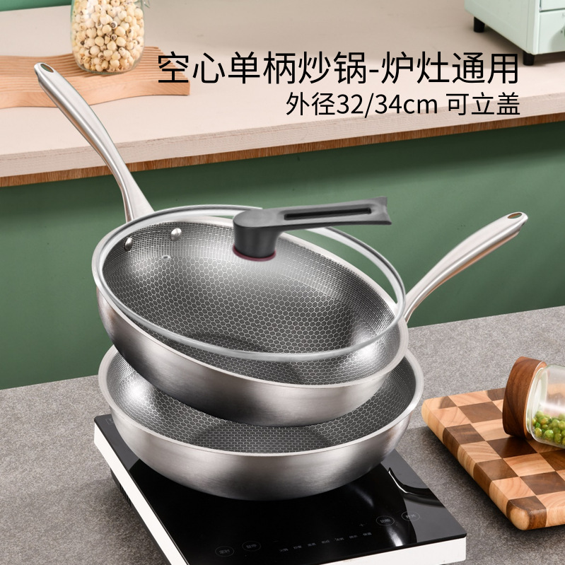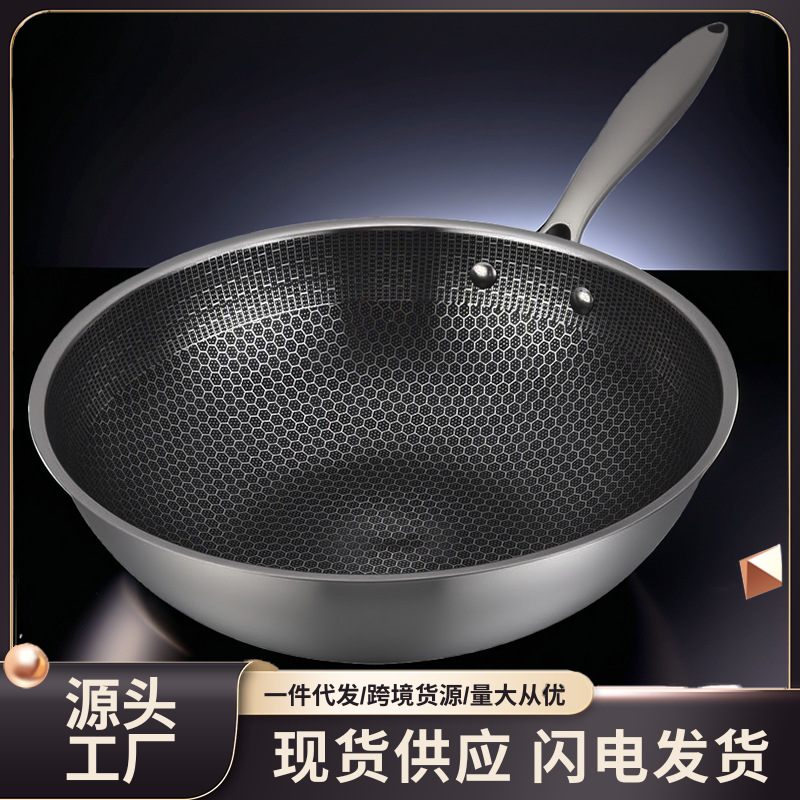 Производитель оптом поставляет стальные воки для дома, полноэкранные, сотовые, с антипригарным покрытием, без покрытия, с плоским дном, из нержавеющей стали.