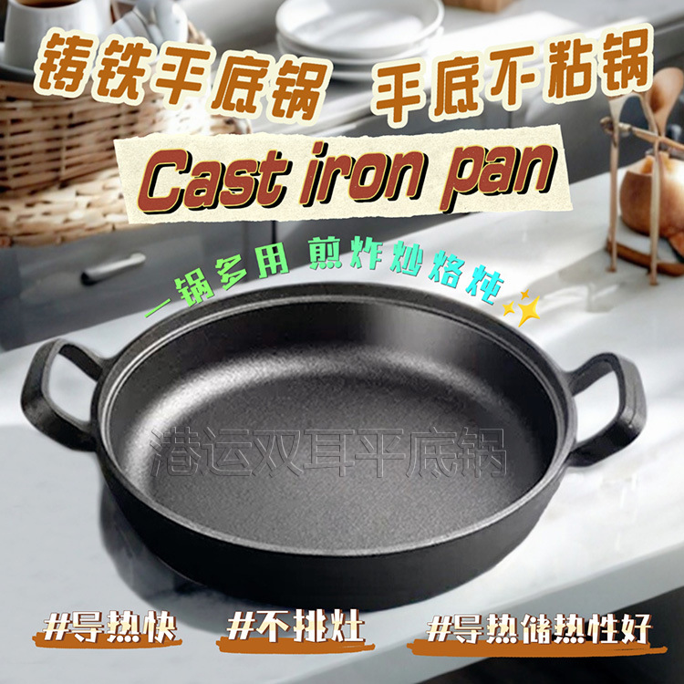 Главная страница > Утолщенный чугунный горшок с двойными ушками на плоской подошве и антипригарным дном, горшок для омлета теппаньяки, бытовая старомодная сковорода, сковорода для блинов, прямая поставка