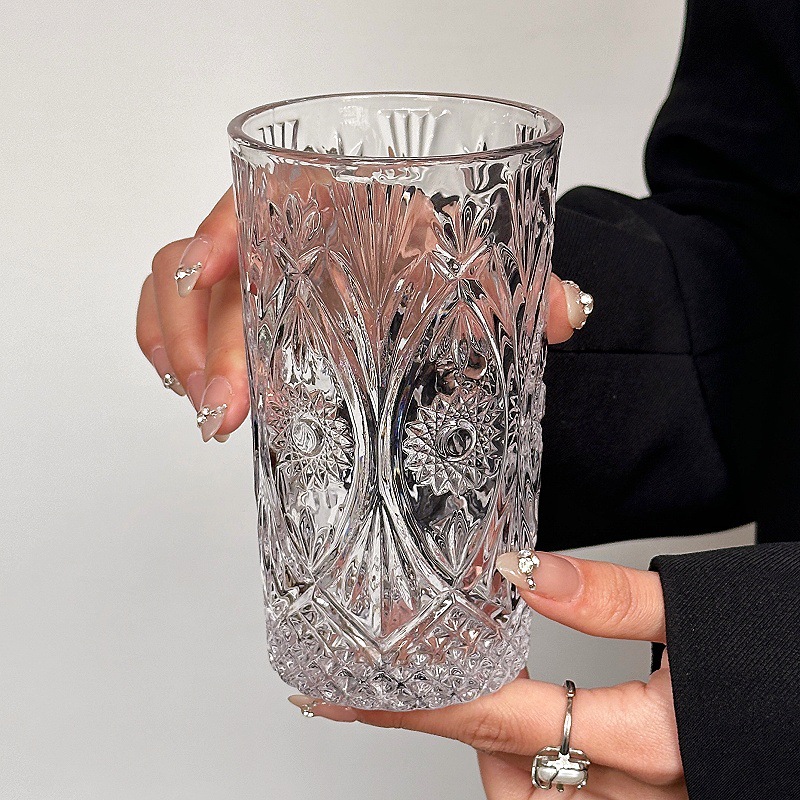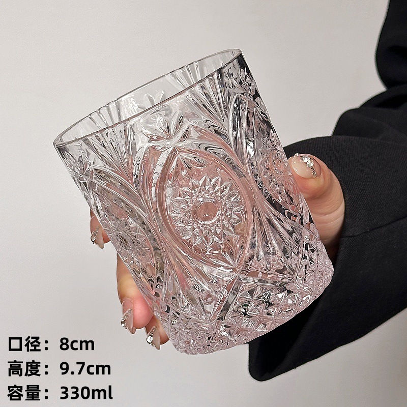 Главная страница > Стеклянная чашка с тисненым резным тотемом, чашка для напитков в стиле INS, винтажный бокал для вина в европейском стиле, чашка для сока, чашка для молока, чашка для холодных напитков.