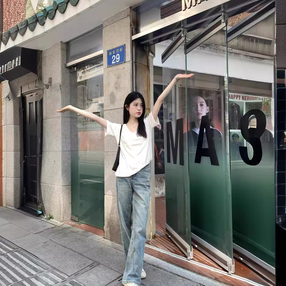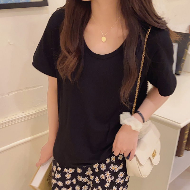 Главная страница > Белая футболка с U-образным вырезом женская рубашка с короткими рукавами на плече летом 2024 новая свободная тонкая внутренняя нижняя рубашка