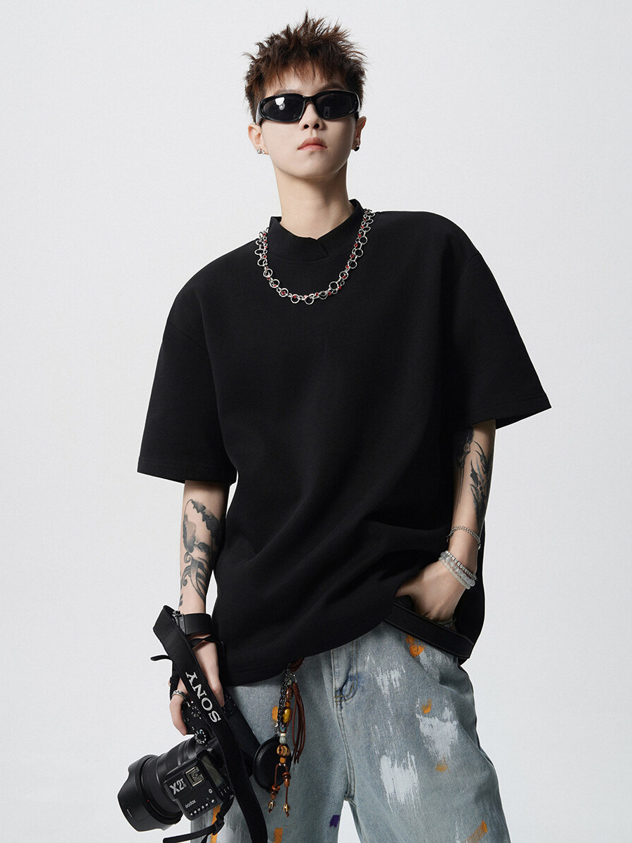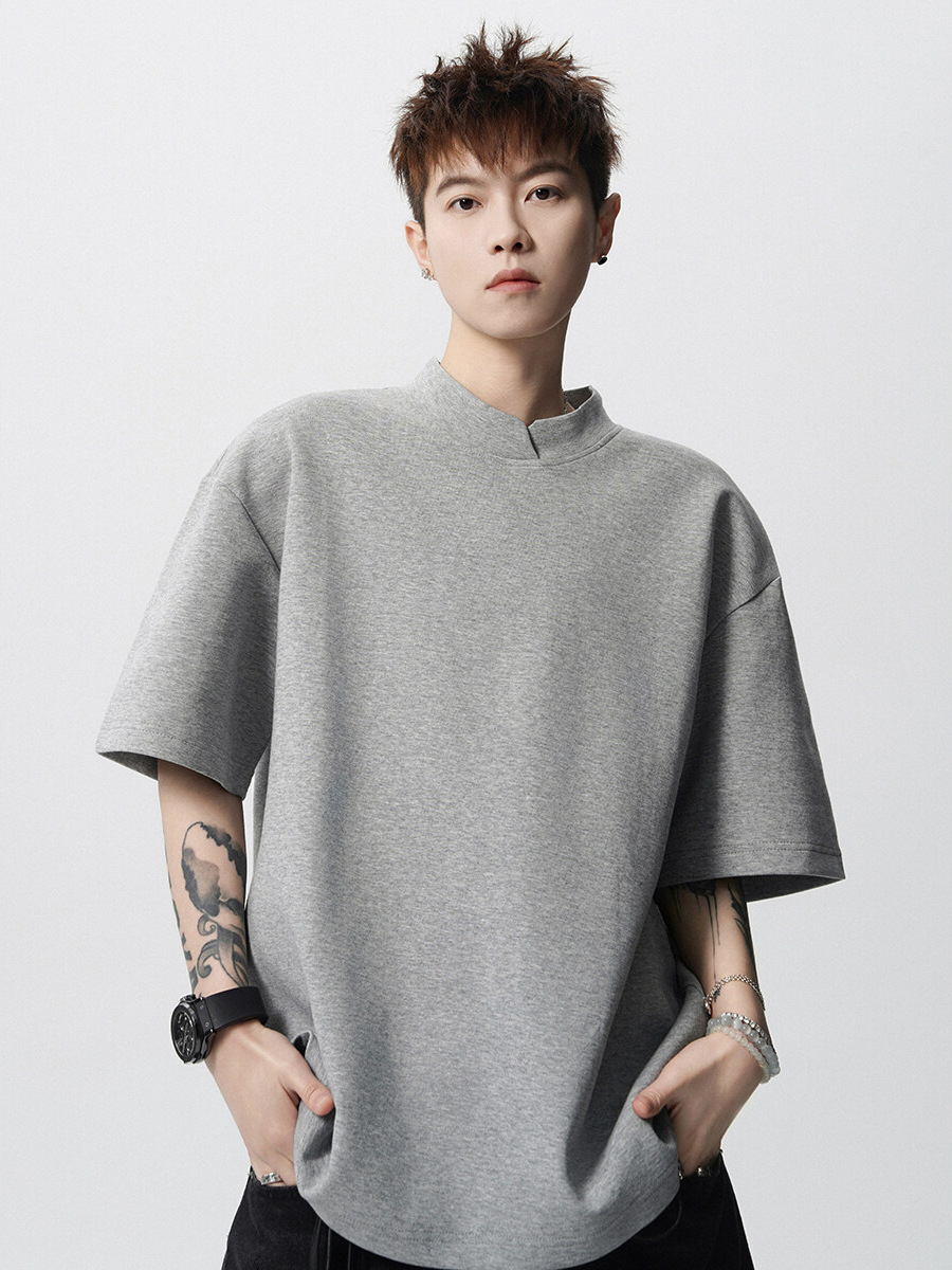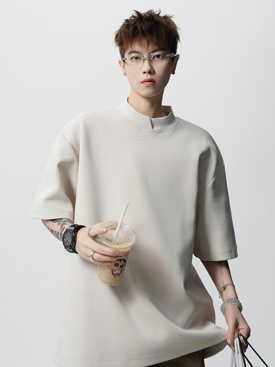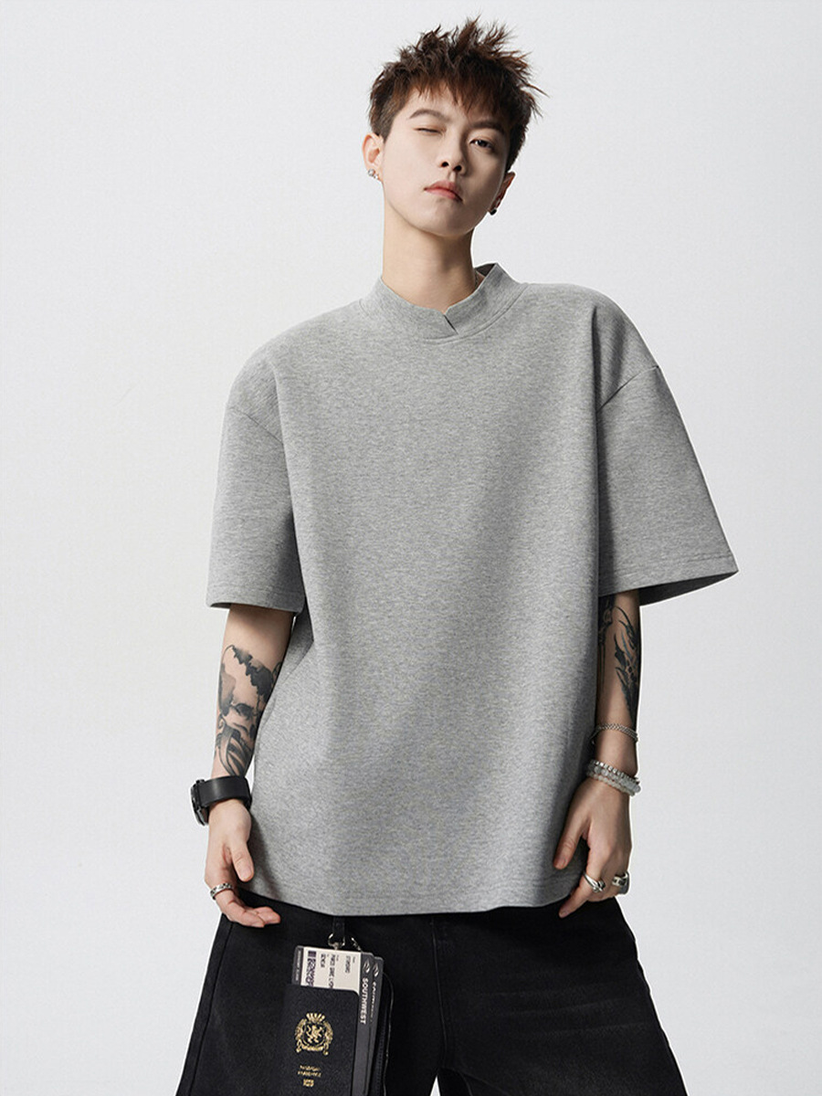 Главная страница > Сплошной цвет воздуха слой полувысокого воротника с короткими рукавами футболка мужской летний новый американский свободный дизайн чувство тяжелой полукрукавной рубашки