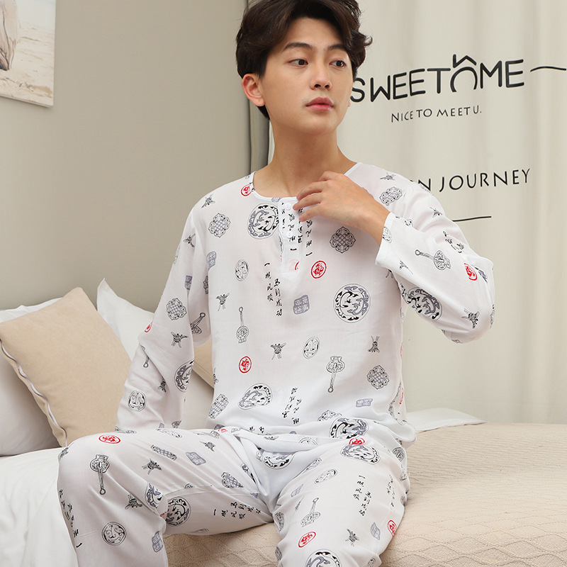 Главная страница > Большая распродажа, хлопково-шелковые пижамы, мужские летние ультратонкие хлопково-шелковые костюмы с длинными рукавами, весенне-осенняя домашняя одежда из искусственного хлопка с длинными рукавами и кондиционером