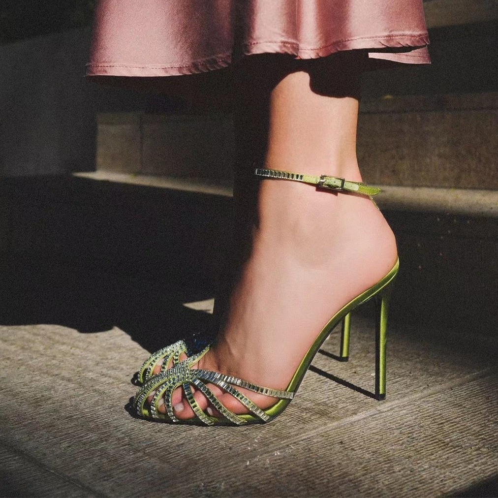 Главная страница > Женские босоножки на высоком каблуке с открытым задом, украшенные стразами, на тонком каблуке, новая модель весна 2025, модные римские туфли с закрытым носком и пряжкой.