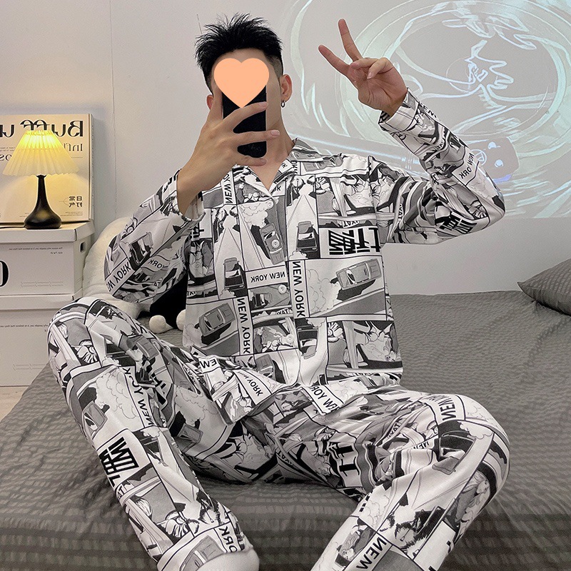 Главная страница > Мужская пижама с длинными рукавами брюки весной и осенью