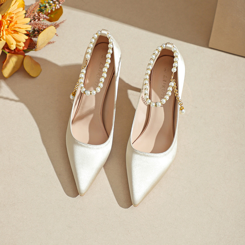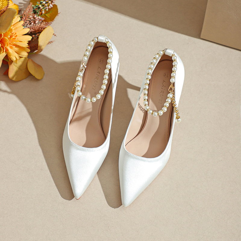 Главная страница > Свадебные туфли с прямой пряжкой размера 31-44, женские свадебные туфли с жемчужной цепочкой, платье Xiuhe, китайские туфли на высоком каблуке красного цвета