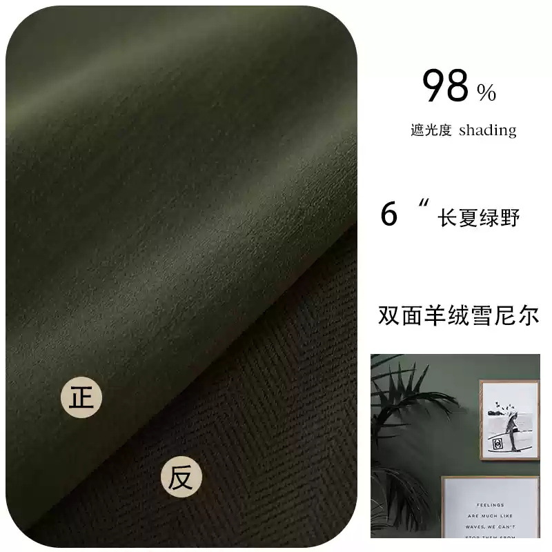 Yunduo Velvet — Long Summer Green Field, 98 % затенение, непрозрачный, без красного цвета, 0 формальдегида.