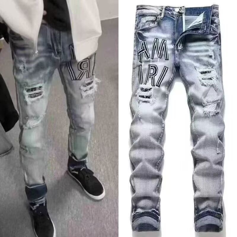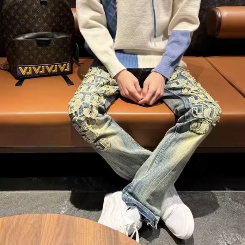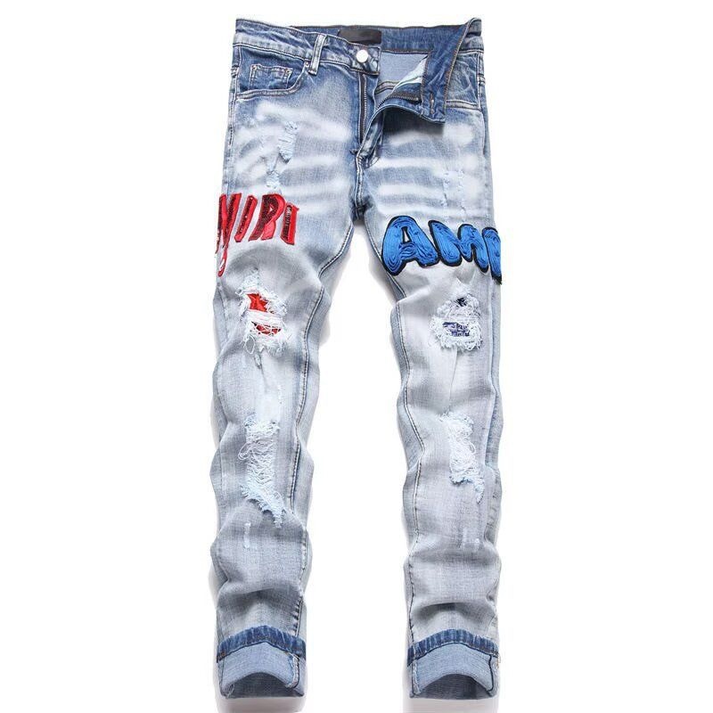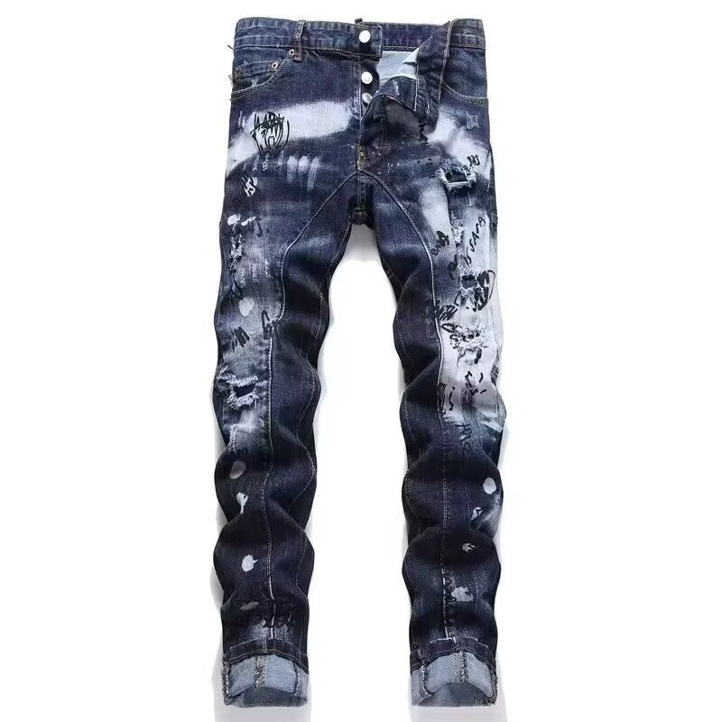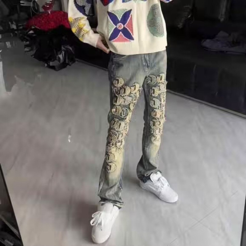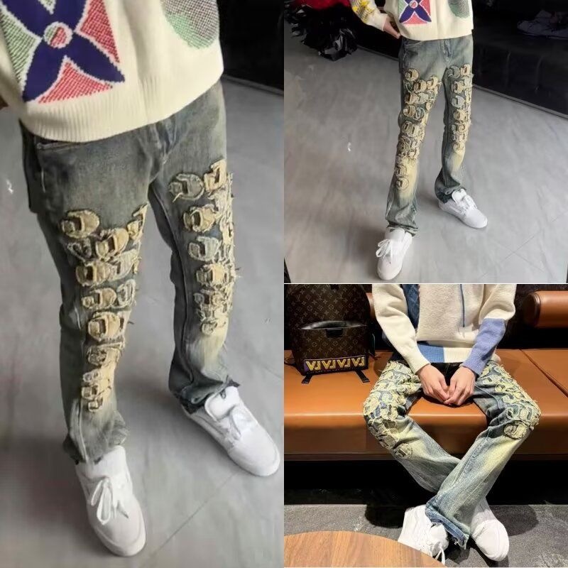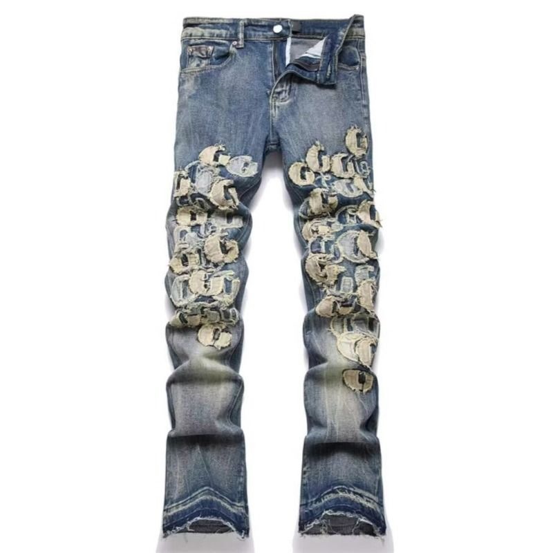 Главная страница > Модные новые прямые мужские джинсы с вышивкой в стиле пэчворк, уникальным стилем и эластичным материалом.