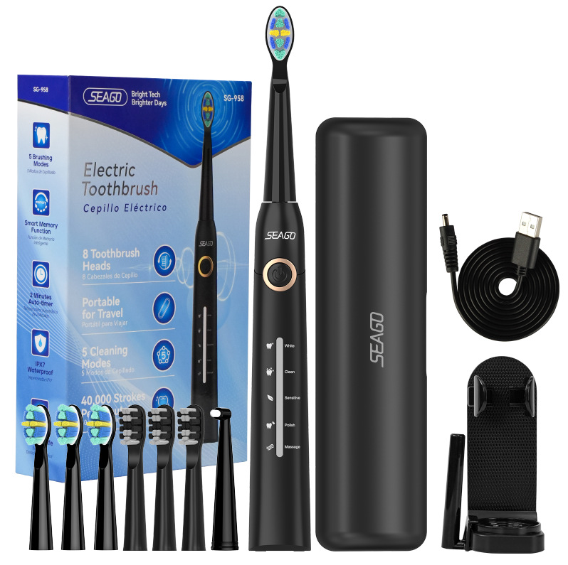 SG-958F черный [основная ручка + 8 насадок-щеток + пылезащитный чехол + 1 зарядный кабель + 1 дорожный кейс]