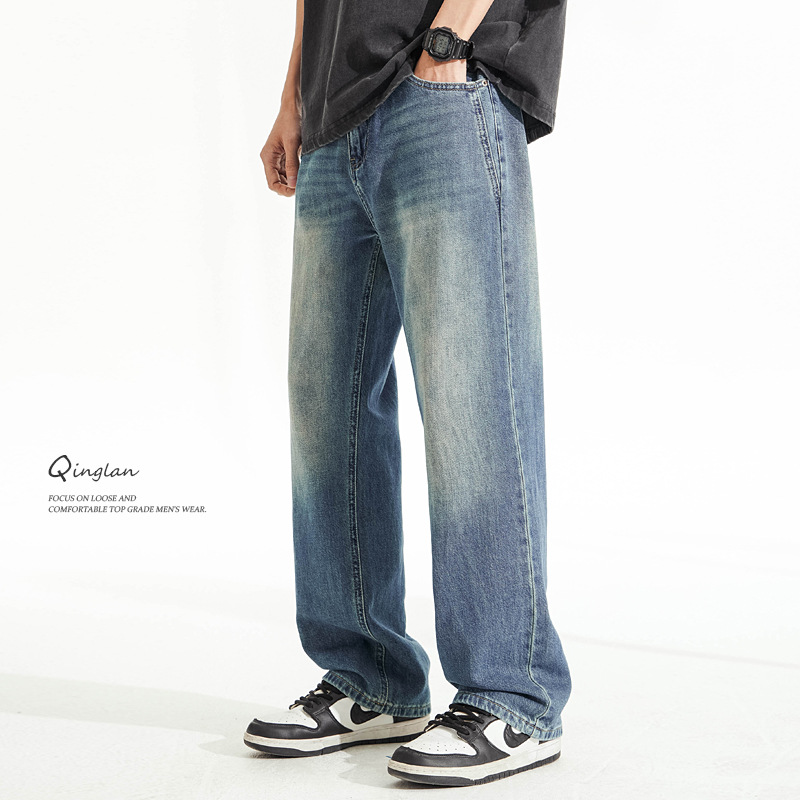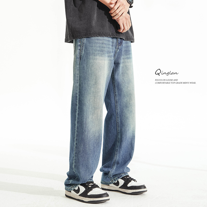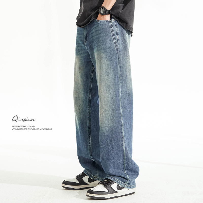 Главная страница > Мужские джинсы свободного кроя из хлопка на осень и зиму, большие размеры, винтажный синий цвет, модные повседневные брюки для мужчин.