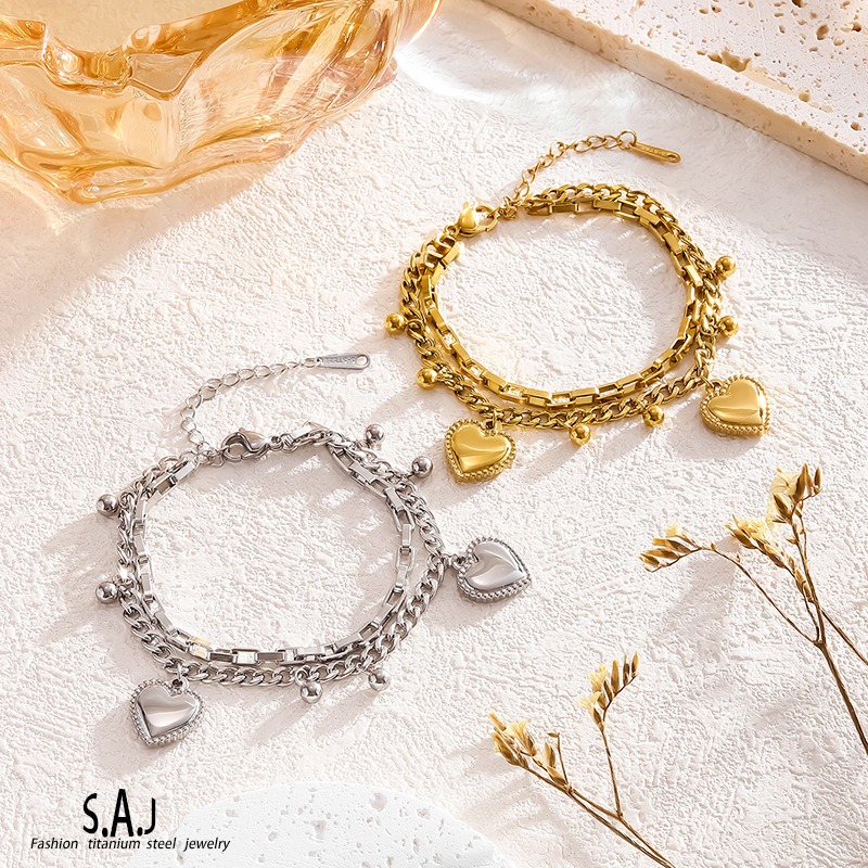 Европейские и американские французские аксессуары преувеличены, браслет хип-хоп, двухслойная цепочка, сетка, красная индивидуальность, украшение, титановая сталь, не выцветает