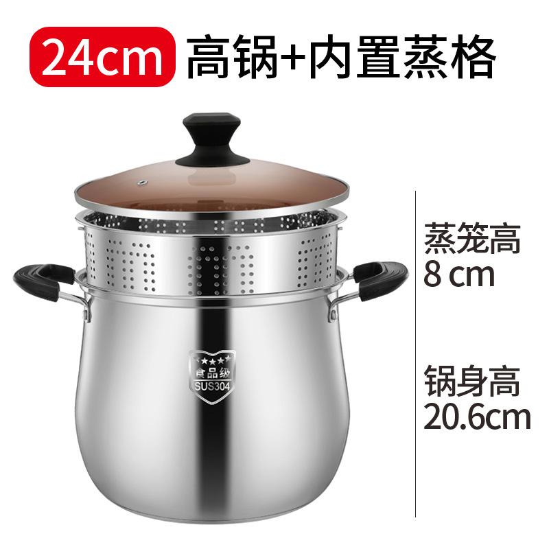 Высокий горшок с дном толщиной 24 см [с 2 решетками для пропаривания]