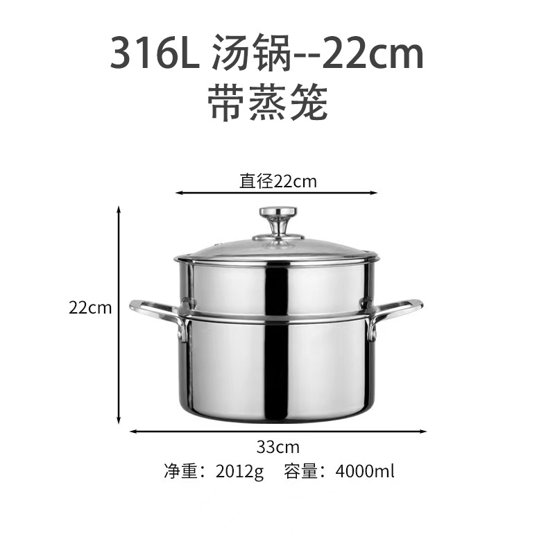 26 трехслойная сталь 316L глубокий суповой горшок + 304 Паровая сетка