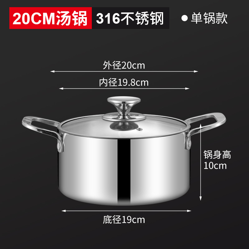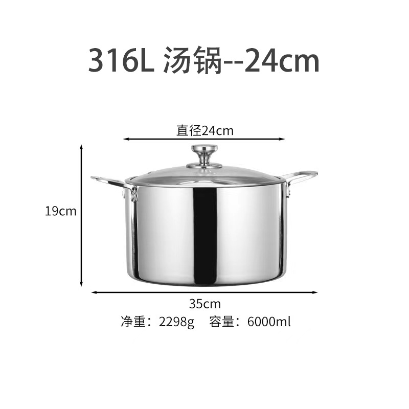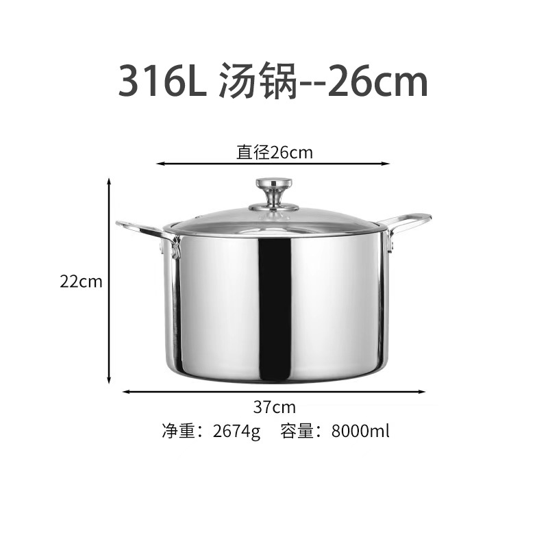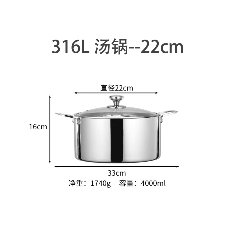 22 Трехслойная стальная большая суповая кастрюля 316L