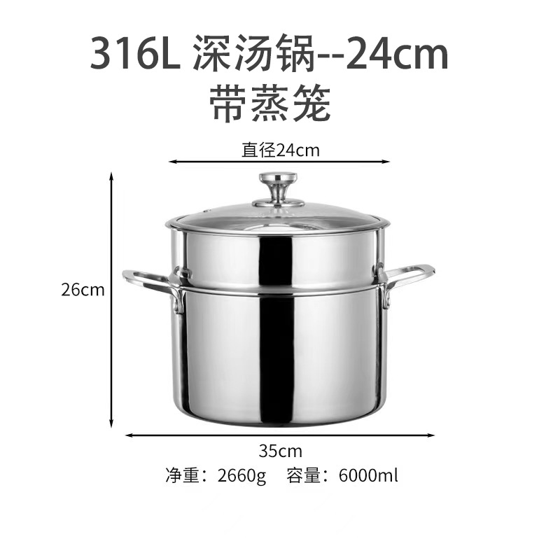 24 трехслойных стальных 316L глубокий суп горшок + 304 паровой сетки